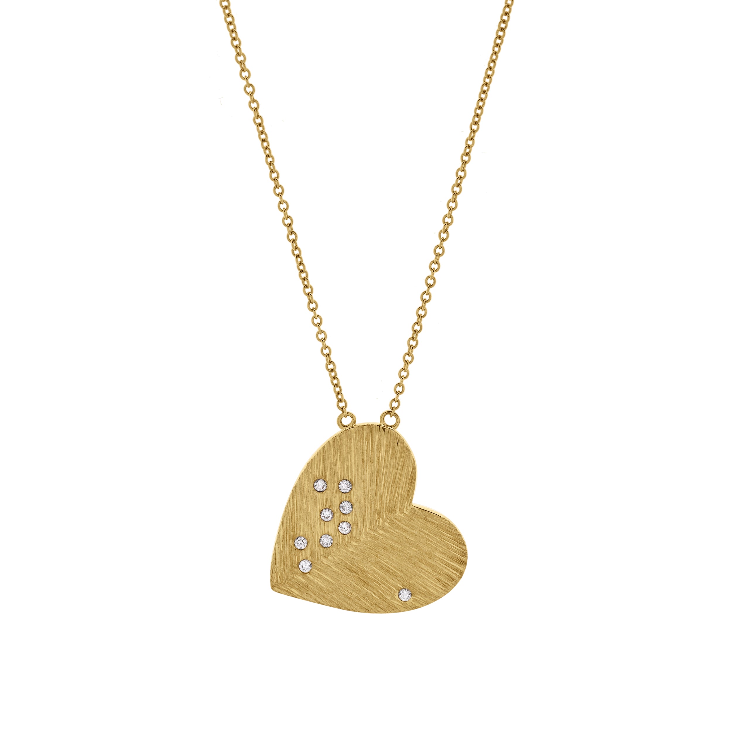 Aether Scattered Diamond Studded Heart Disc Pendant in 14K Yellow Gold