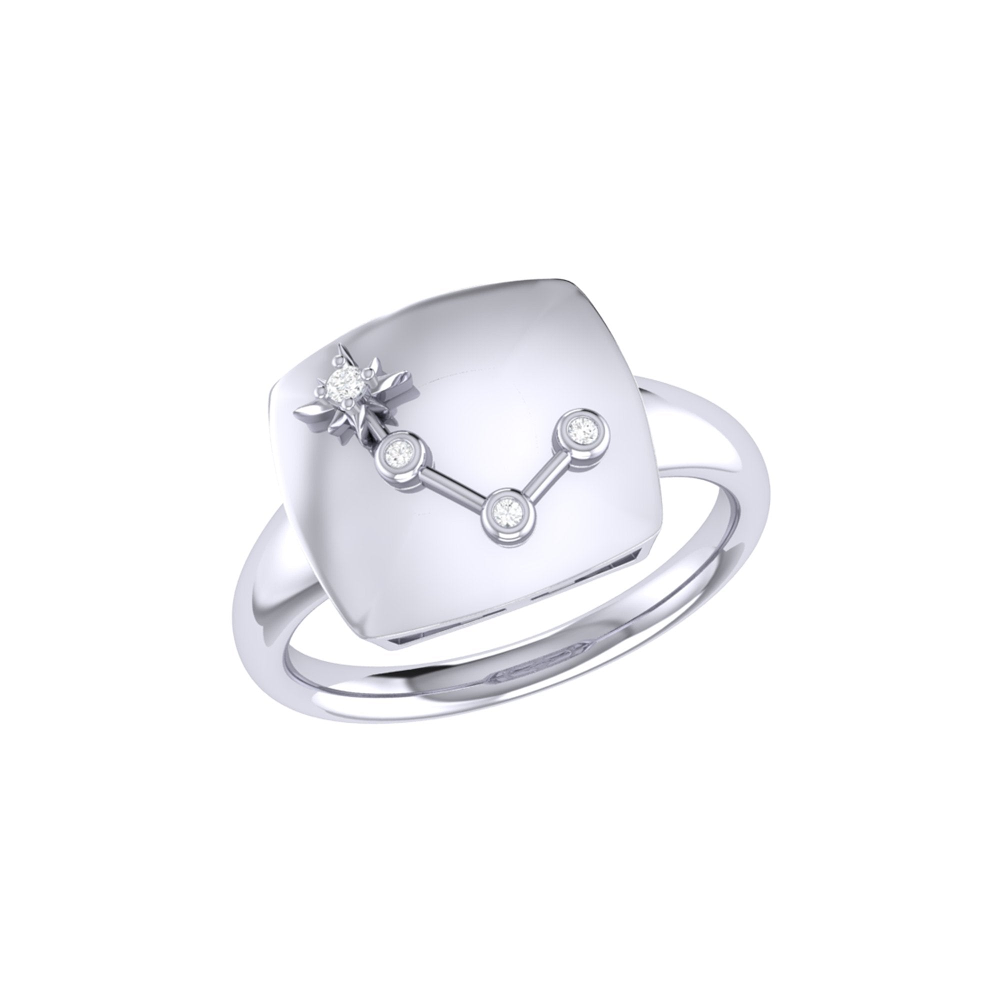 Aries Ram Diamond Constellation Signet Ring in 14K White Gold