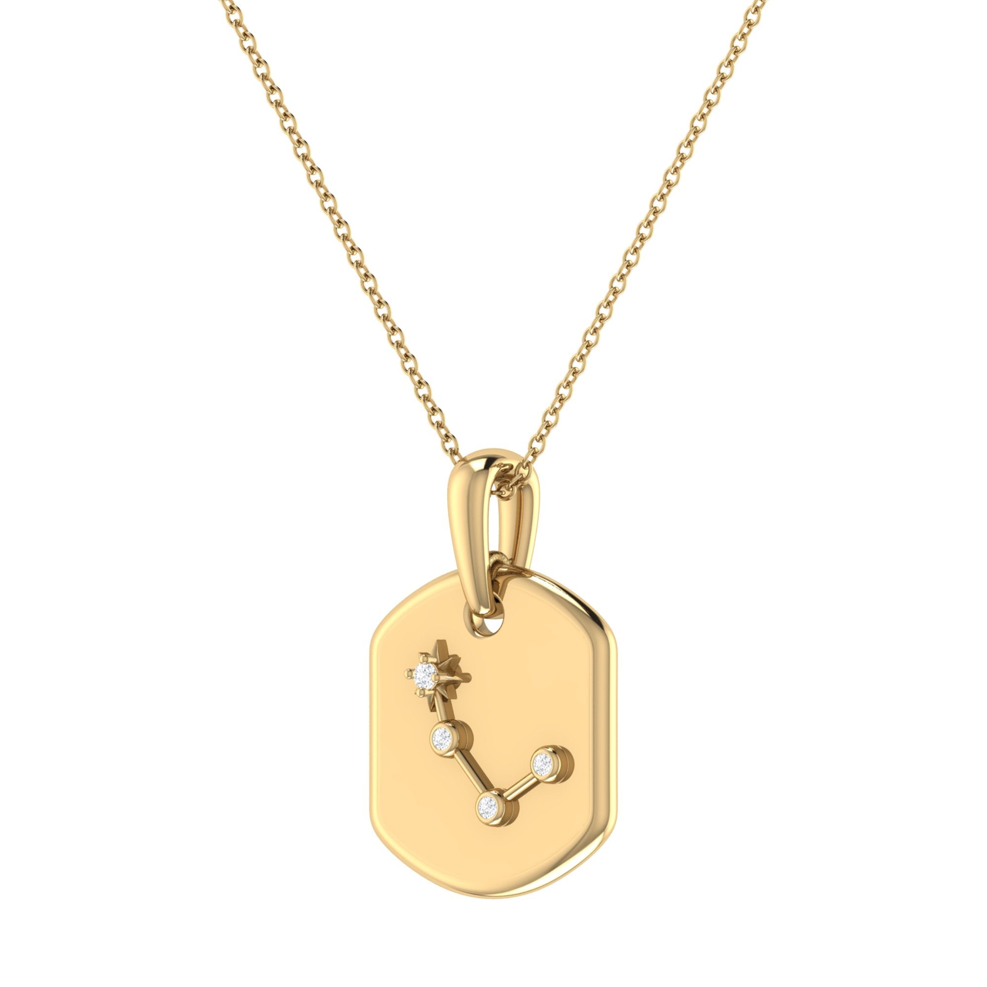 Aries Ram Diamond Constellation Tag Pendant Necklace in 14K Yellow Gold