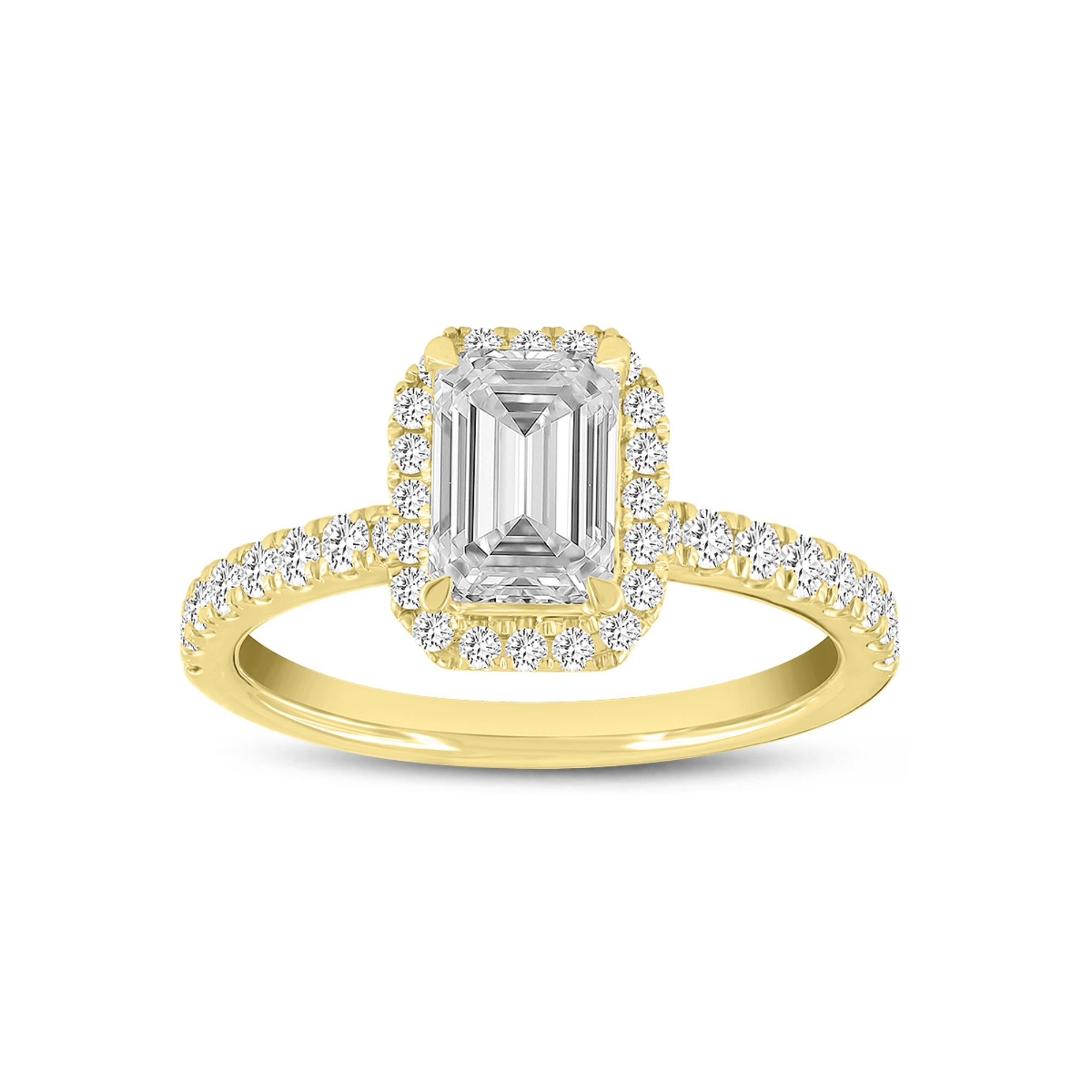 Arpine 14K Yellow Gold Emerald Cut Lab Grown Diamond Halo Engagement Ring - 2 Ct