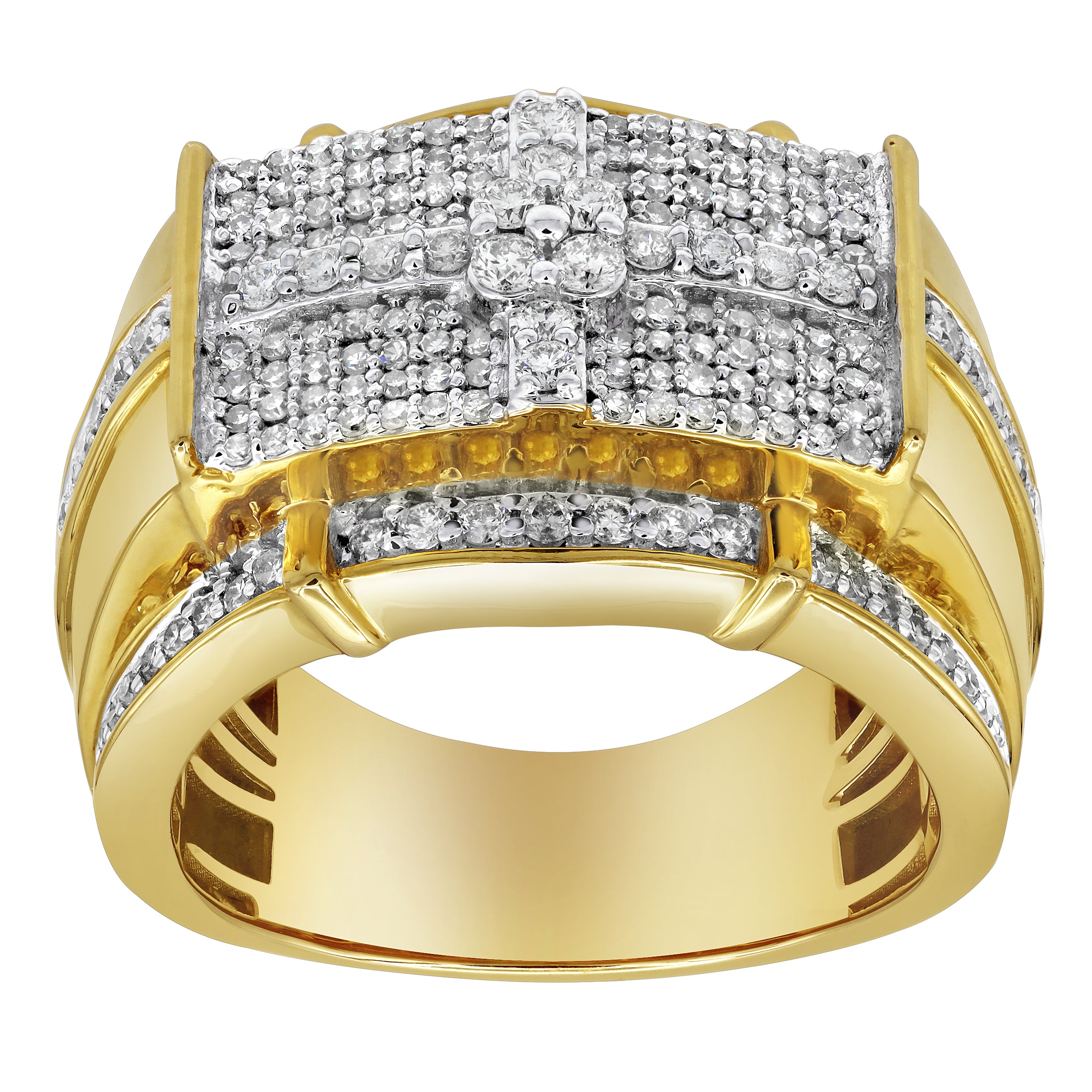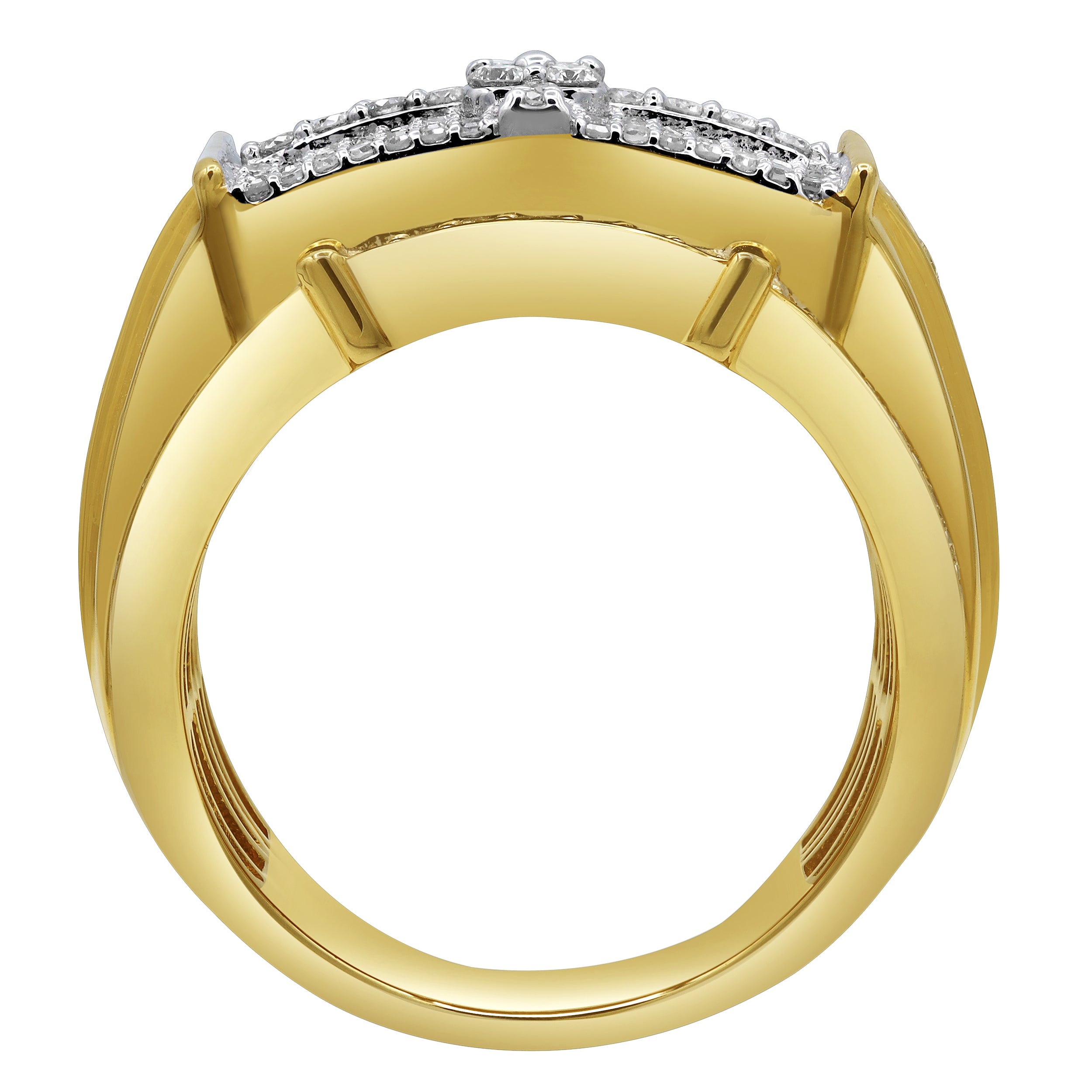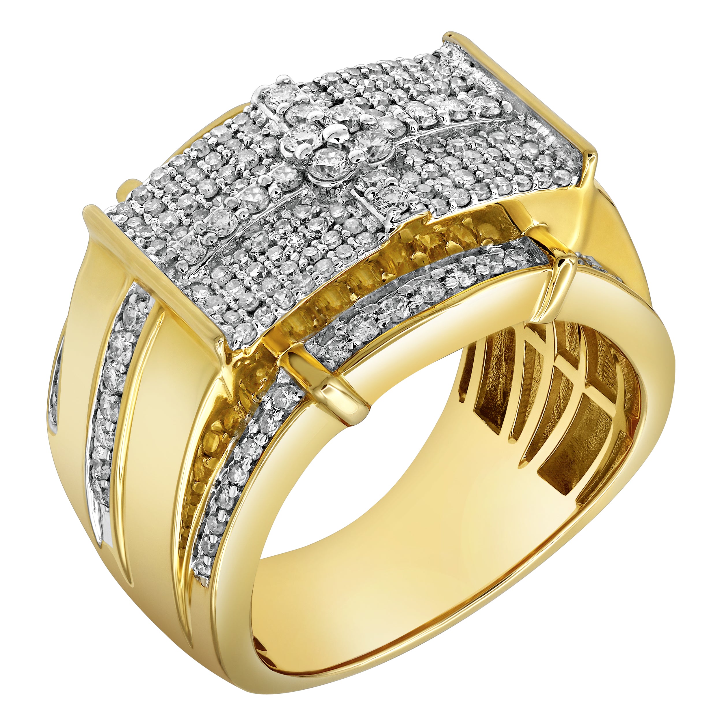 Make a powerful statement with the Banner of Bling ring. Featuring 1.24ct of brilliant diamonds and made in 14K yellow gold. It is the perfect choice for those who want to showcase their refined taste and confidence.