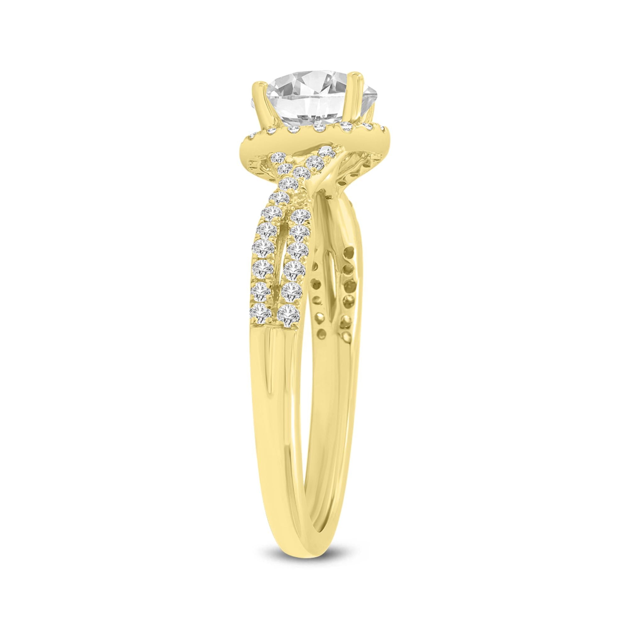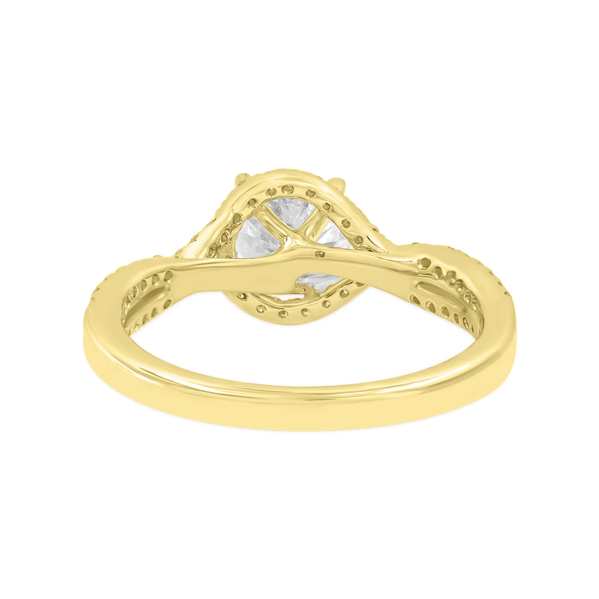 Bijou 14K Yellow Gold Round Cut Lab Grown Diamond Halo Engagement Ring - 2.25 Ct
