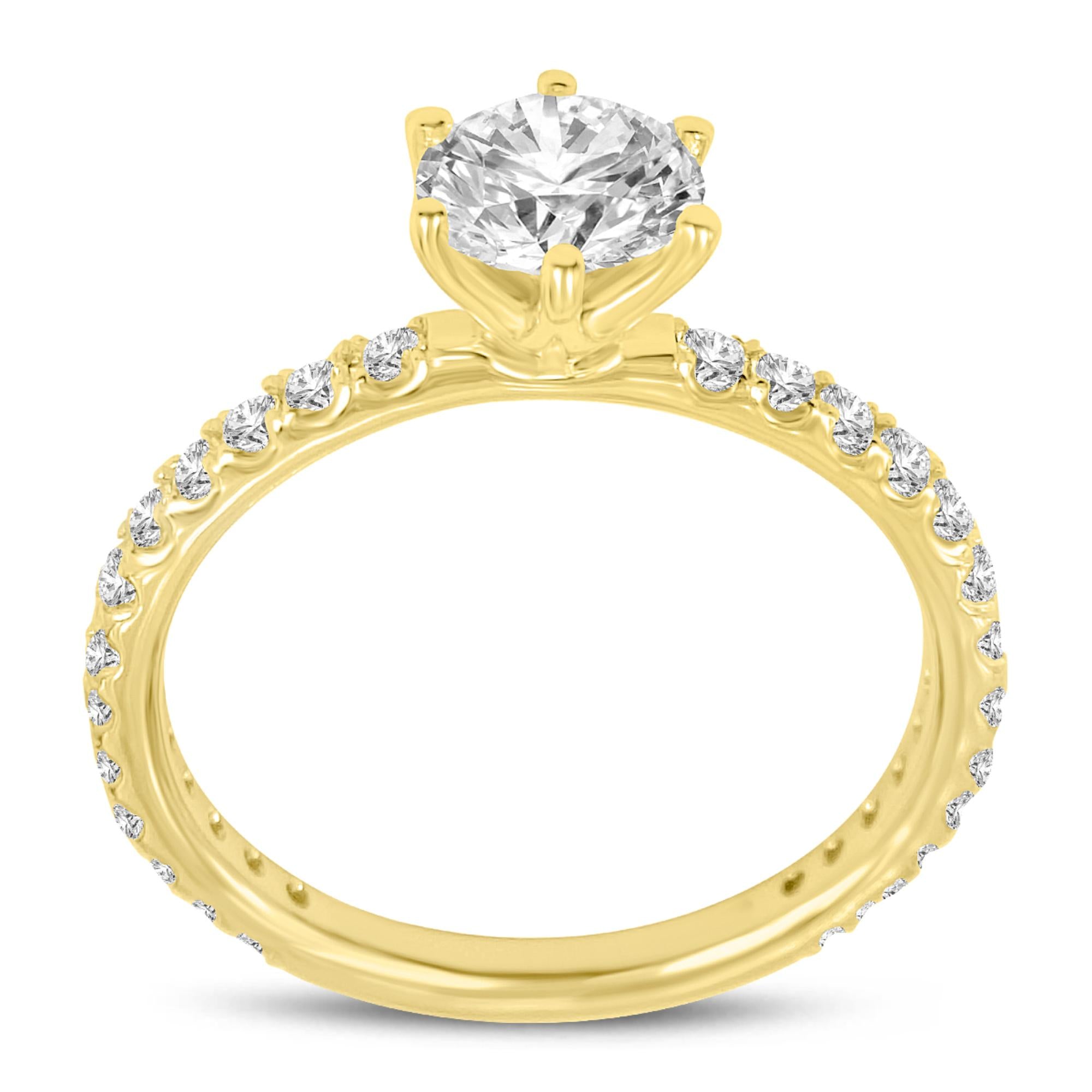 Camille 14K Yellow Gold Round Cut Lab Grown Round Diamond Engagement Ring - 1.52 Ct