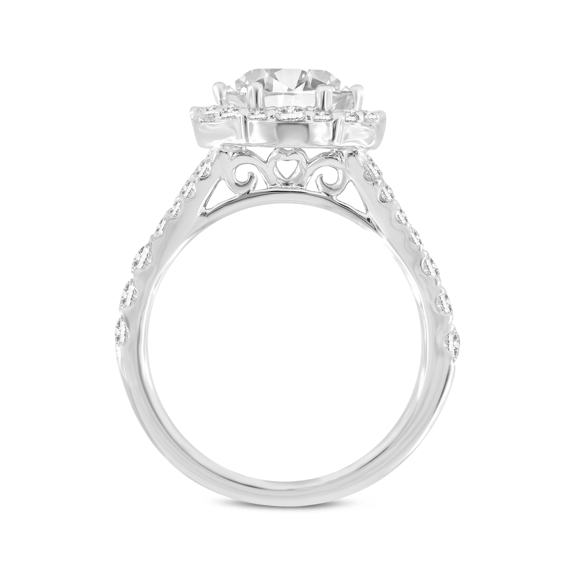 Celine 14K White Gold Round Cut Lab Grown Diamond Halo Engagement Ring - 2.9 Ct