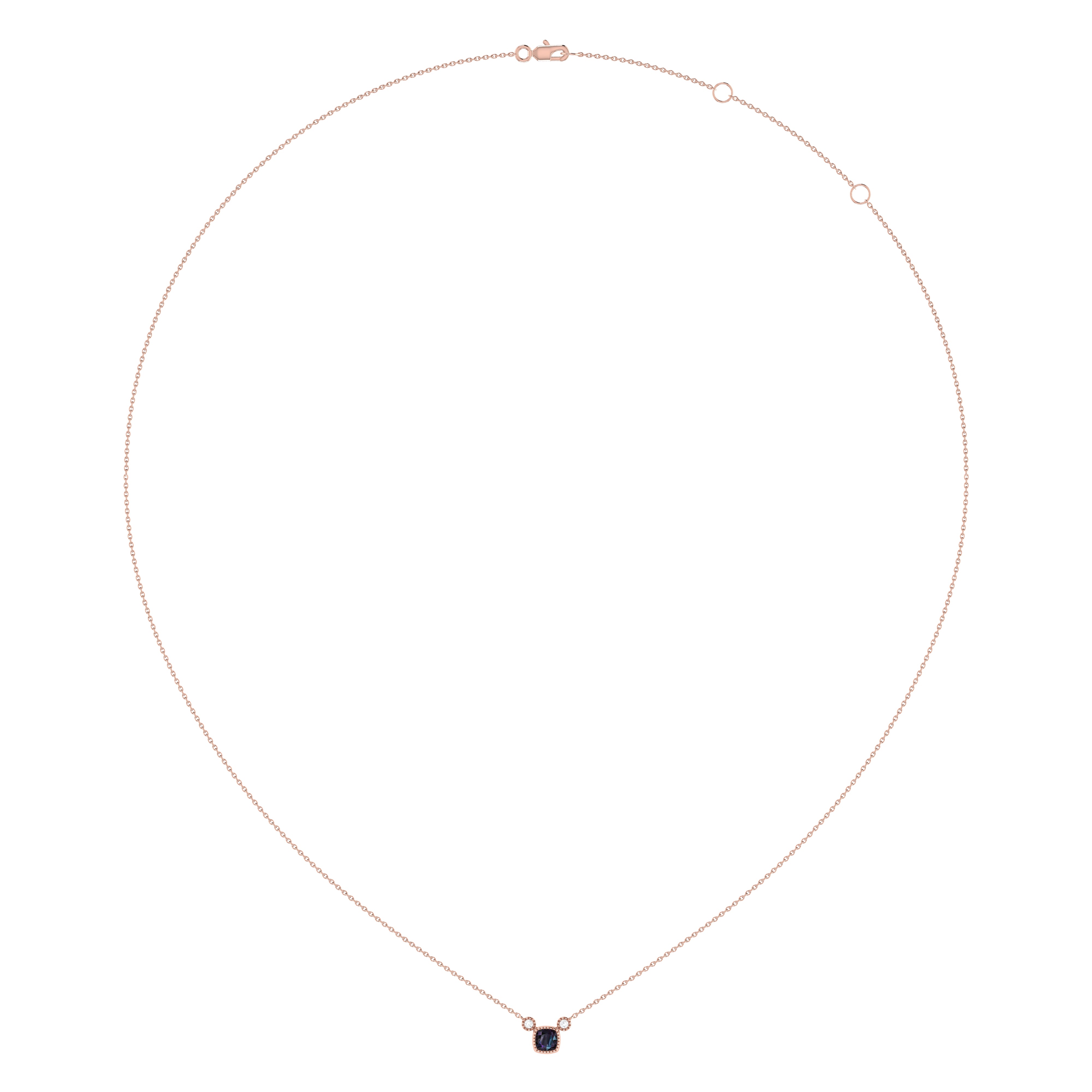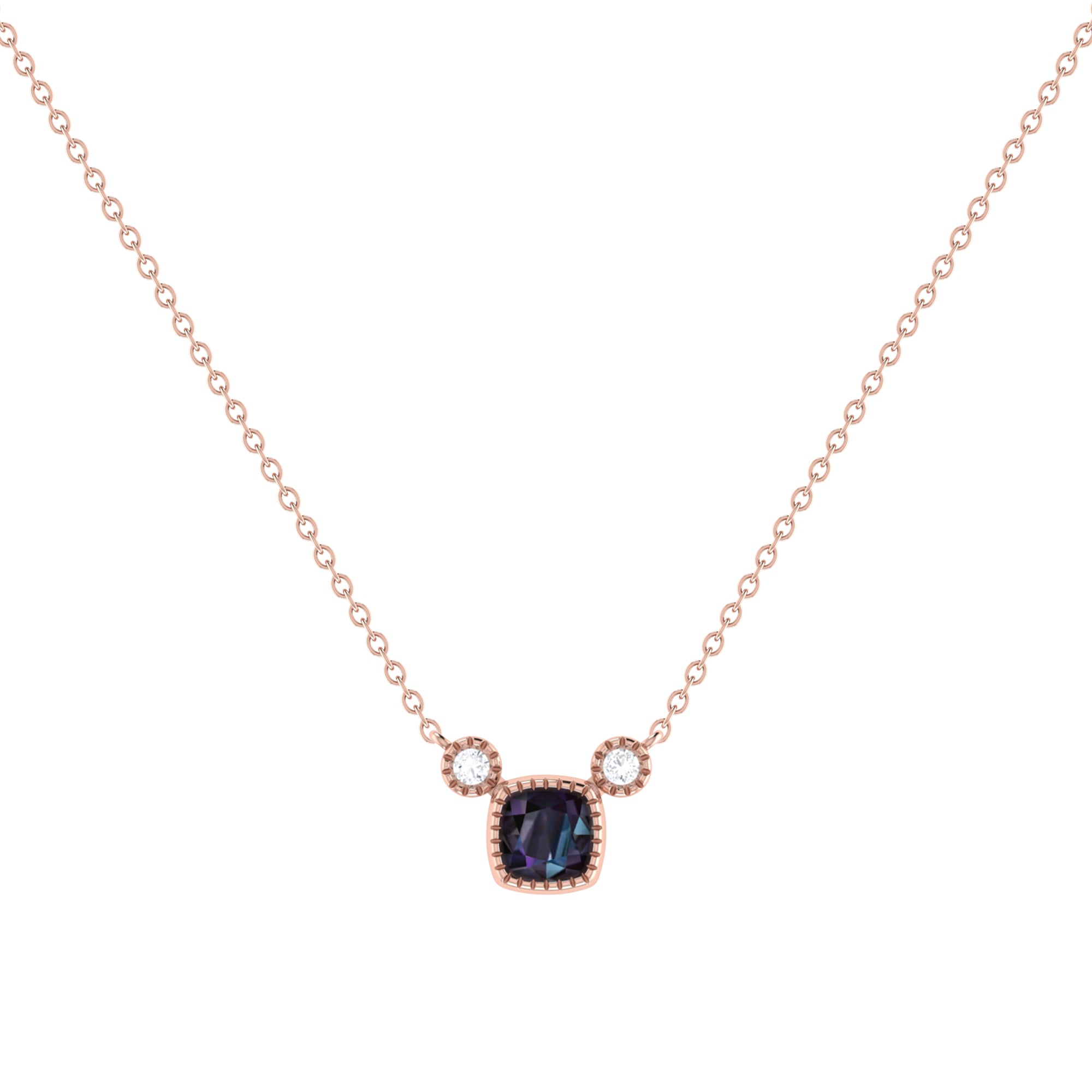 Cushion Cut Alexandrite & Diamond Birthstone Necklace In 14K Rose Gold