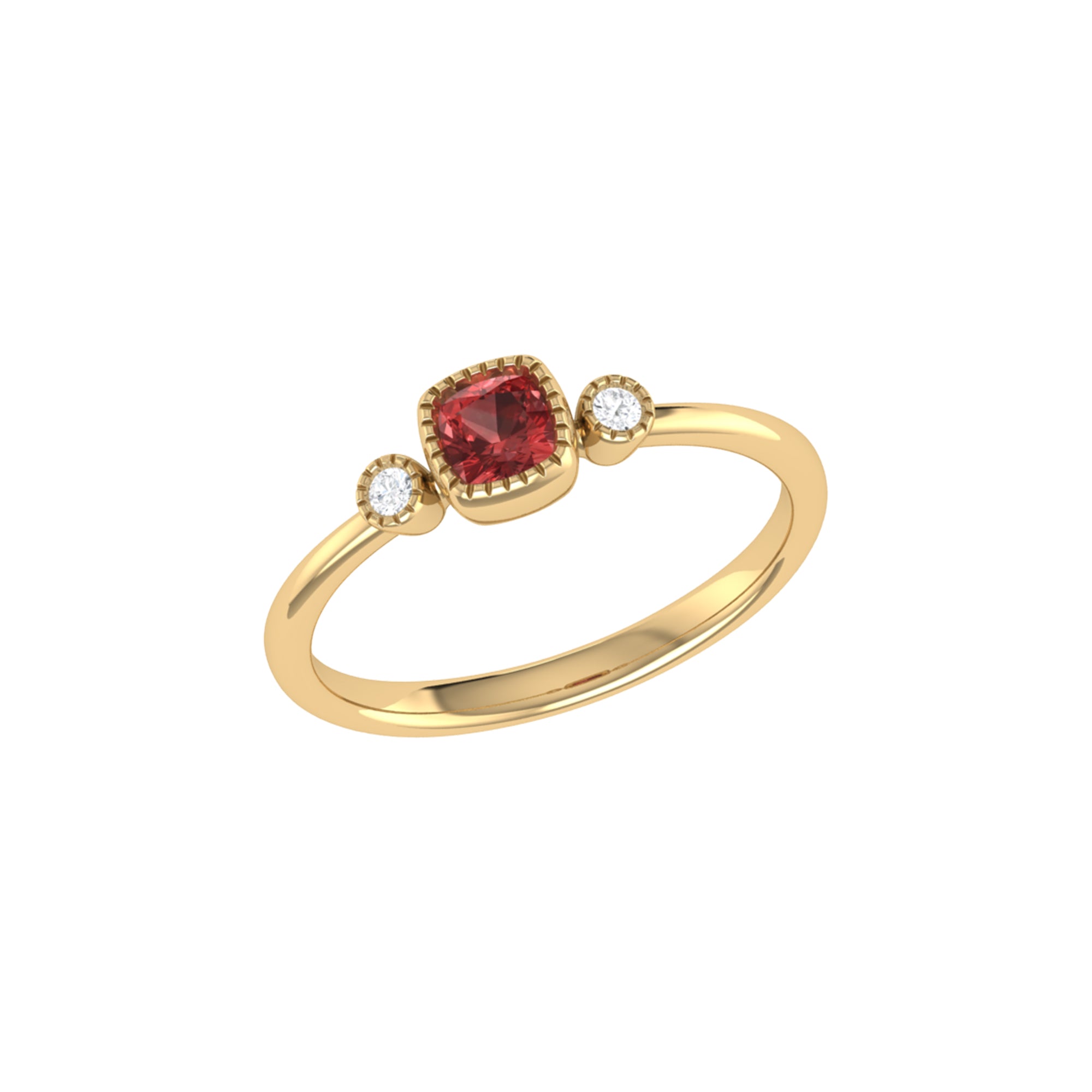 Stack our Cushion Cut Garnet & Diamond Birthstone Ring and add a pop to your style mantra. Handcrafted in 14K Gold for the stylish yet timeless woman.