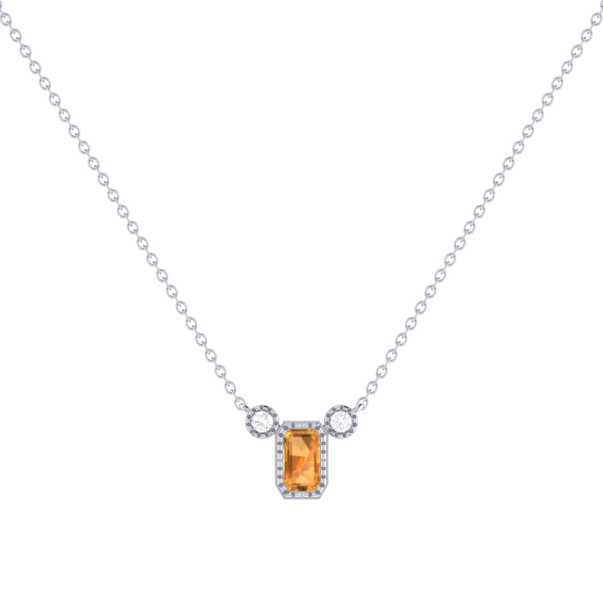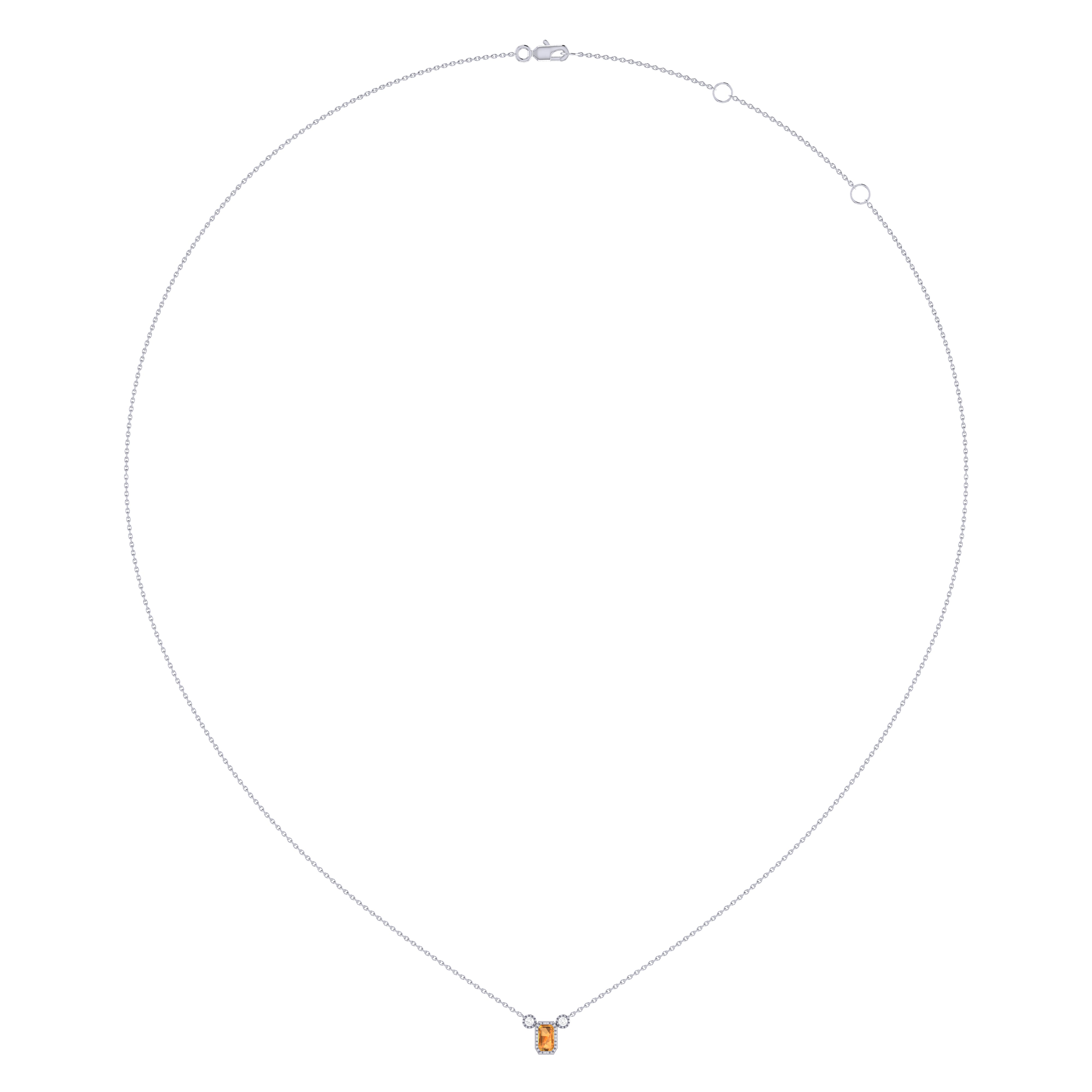 Emerald Cut Citrine & Diamond Birthstone Necklace In 14K White Gold