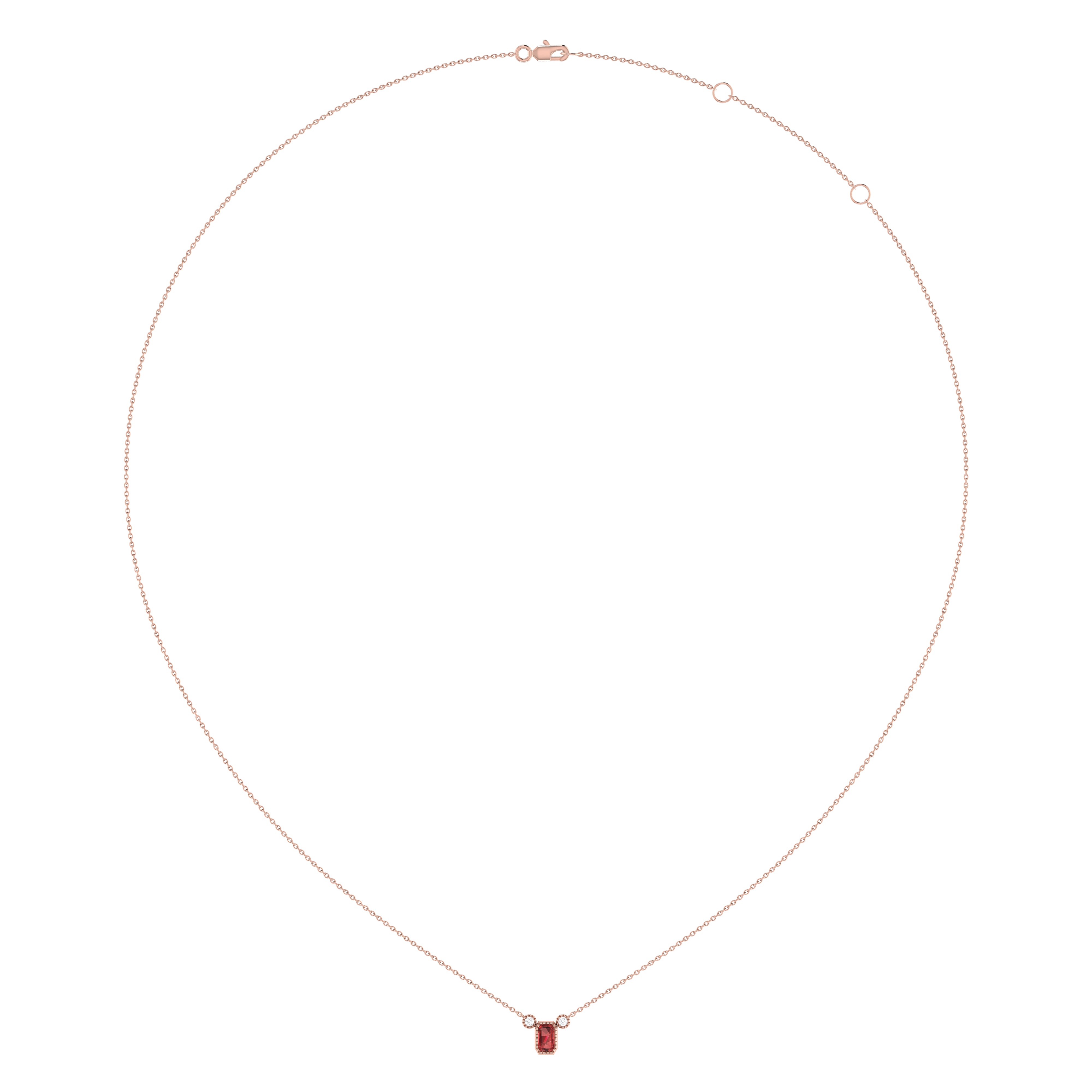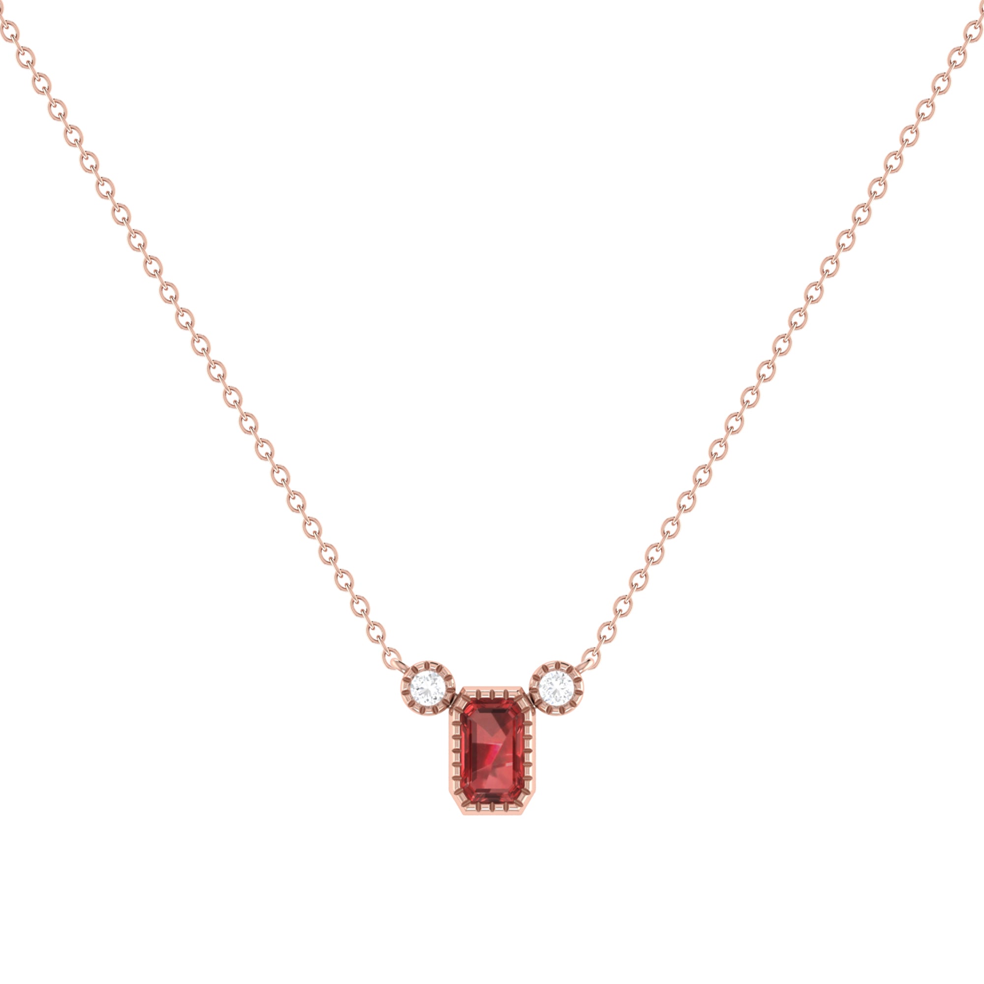 Emerald Cut Garnet & Diamond Birthstone Necklace In 14K Rose Gold