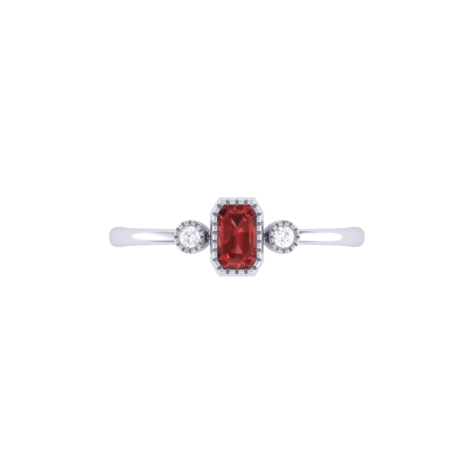 Emerald Cut Garnet & Diamond Birthstone Ring In 14K White Gold