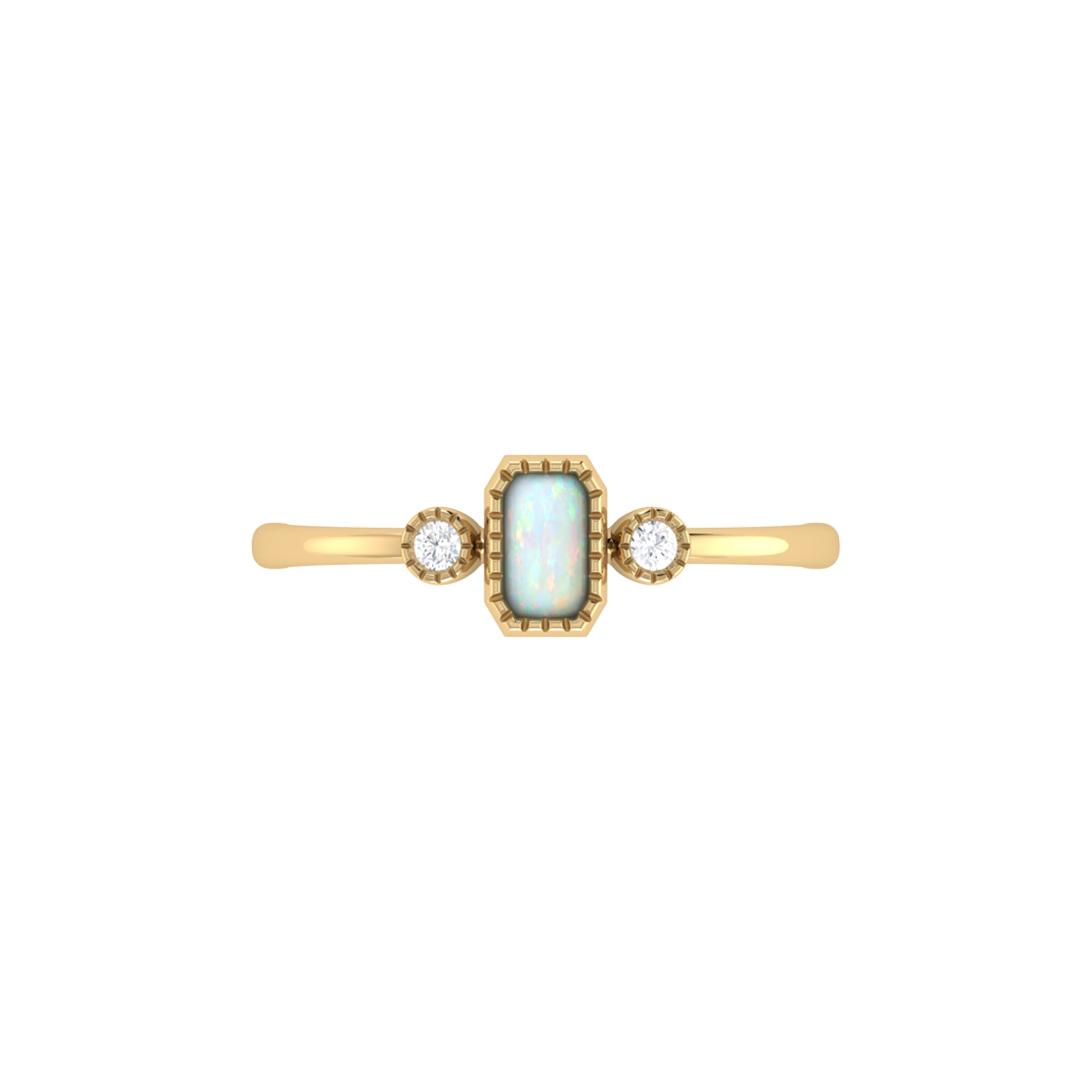 Emerald Cut Opal & Diamond Birthstone Ring In 14K Yellow Gold