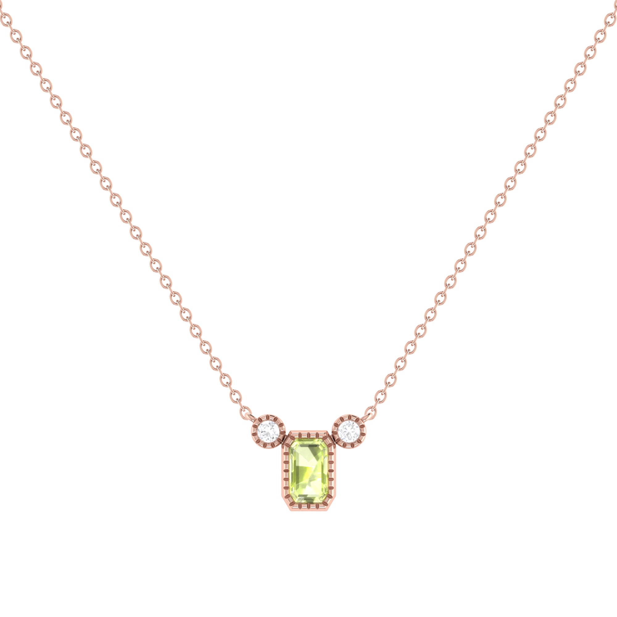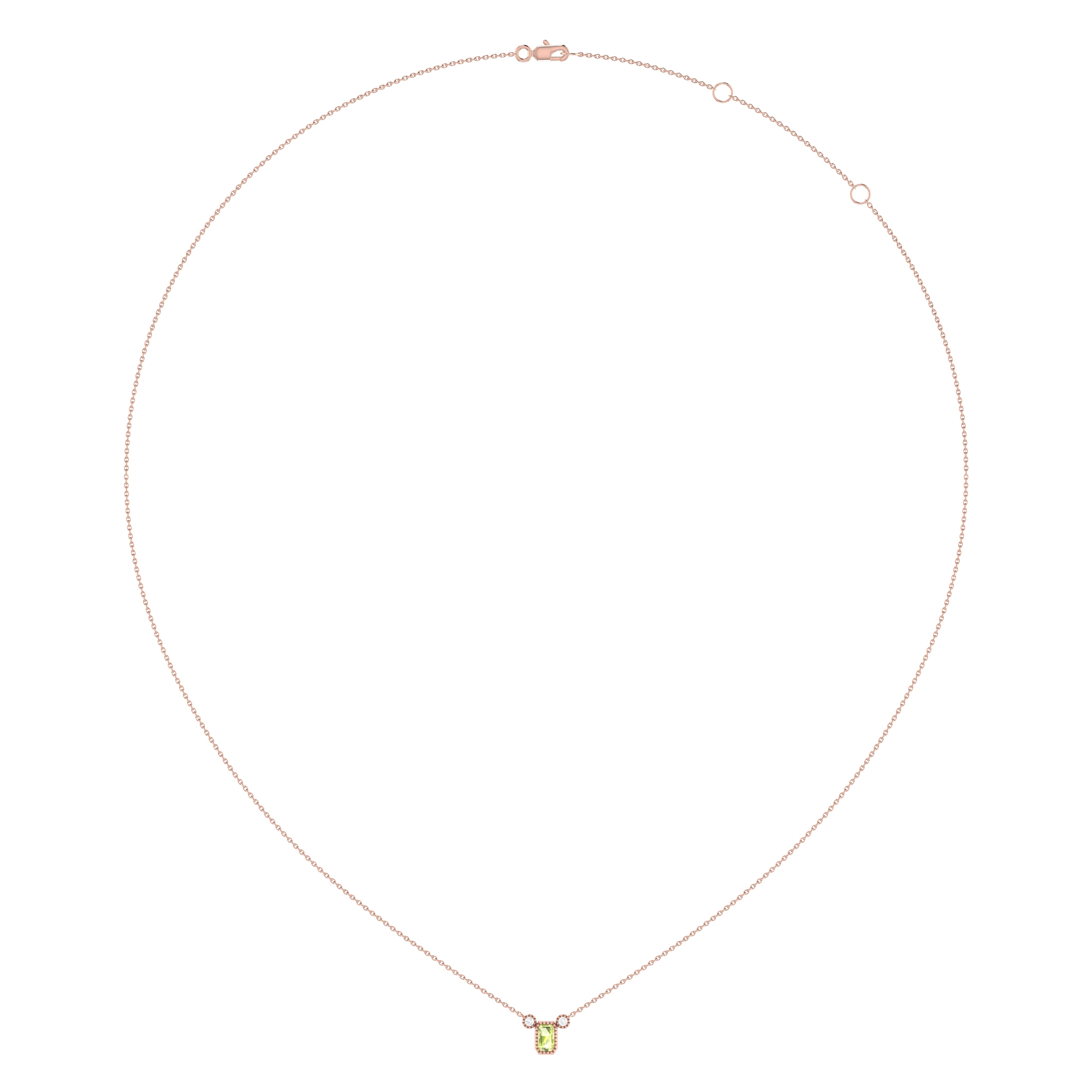 Emerald Cut Peridot & Diamond Birthstone Necklace In 14K Rose Gold