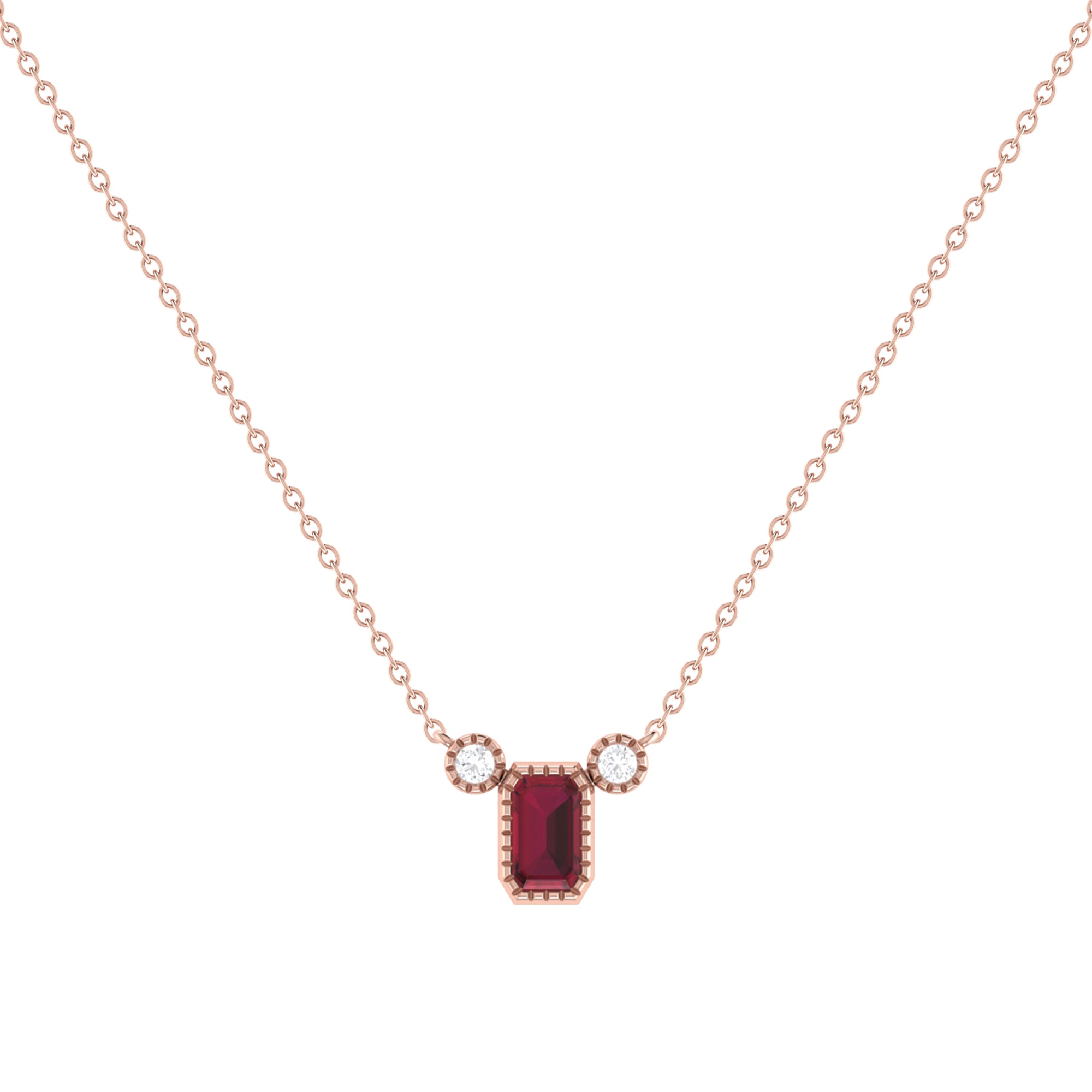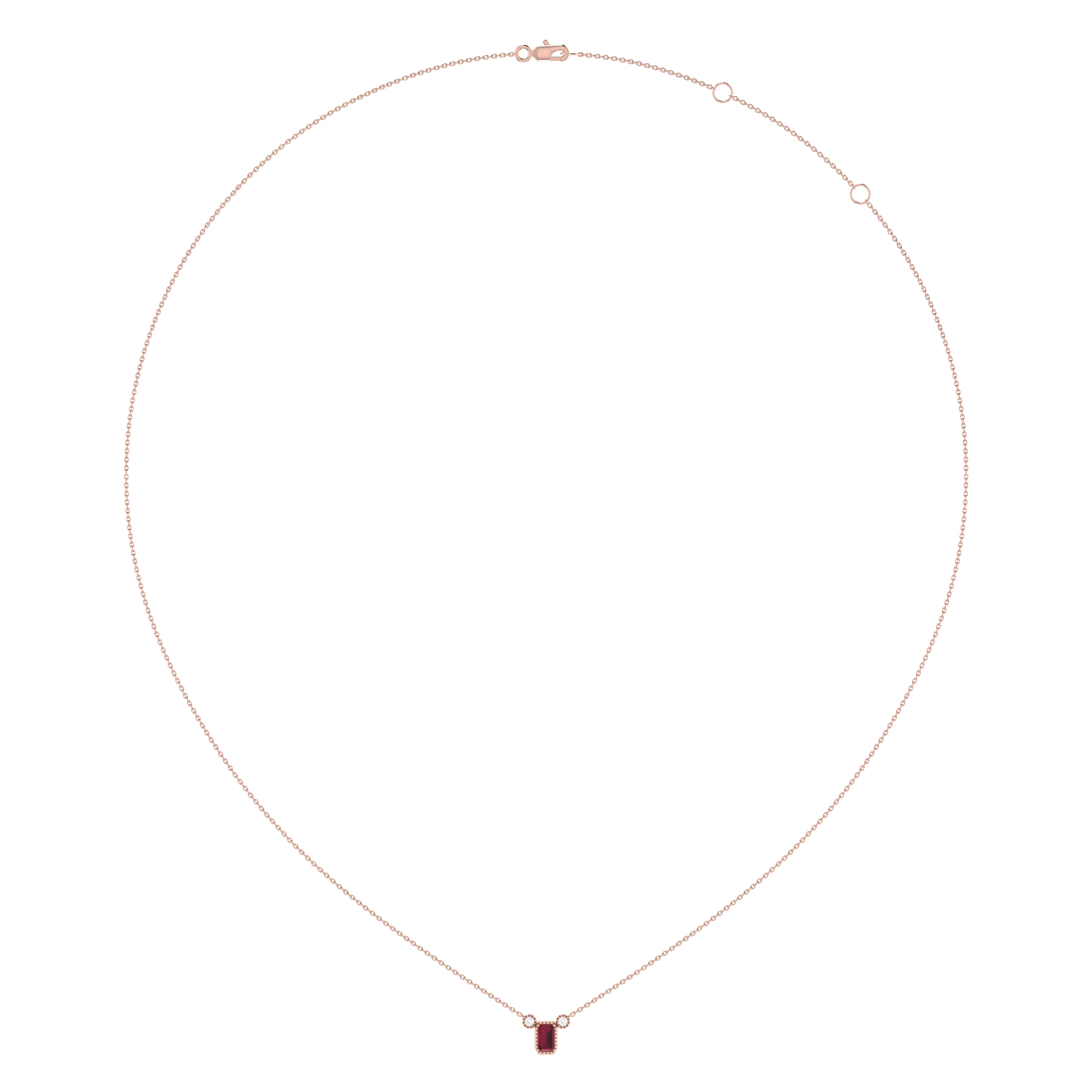 Emerald Cut Ruby & Diamond Birthstone Necklace In 14K Rose Gold