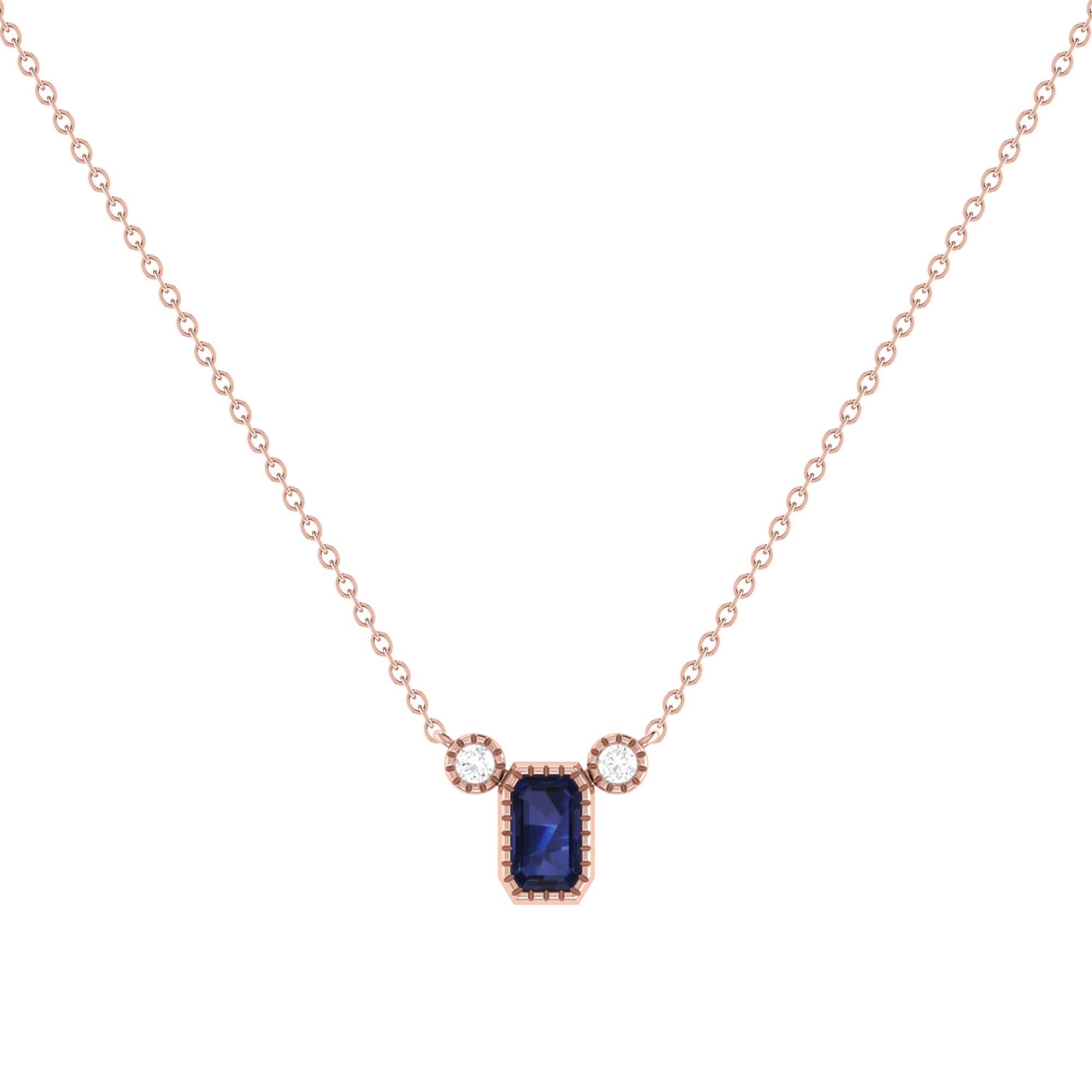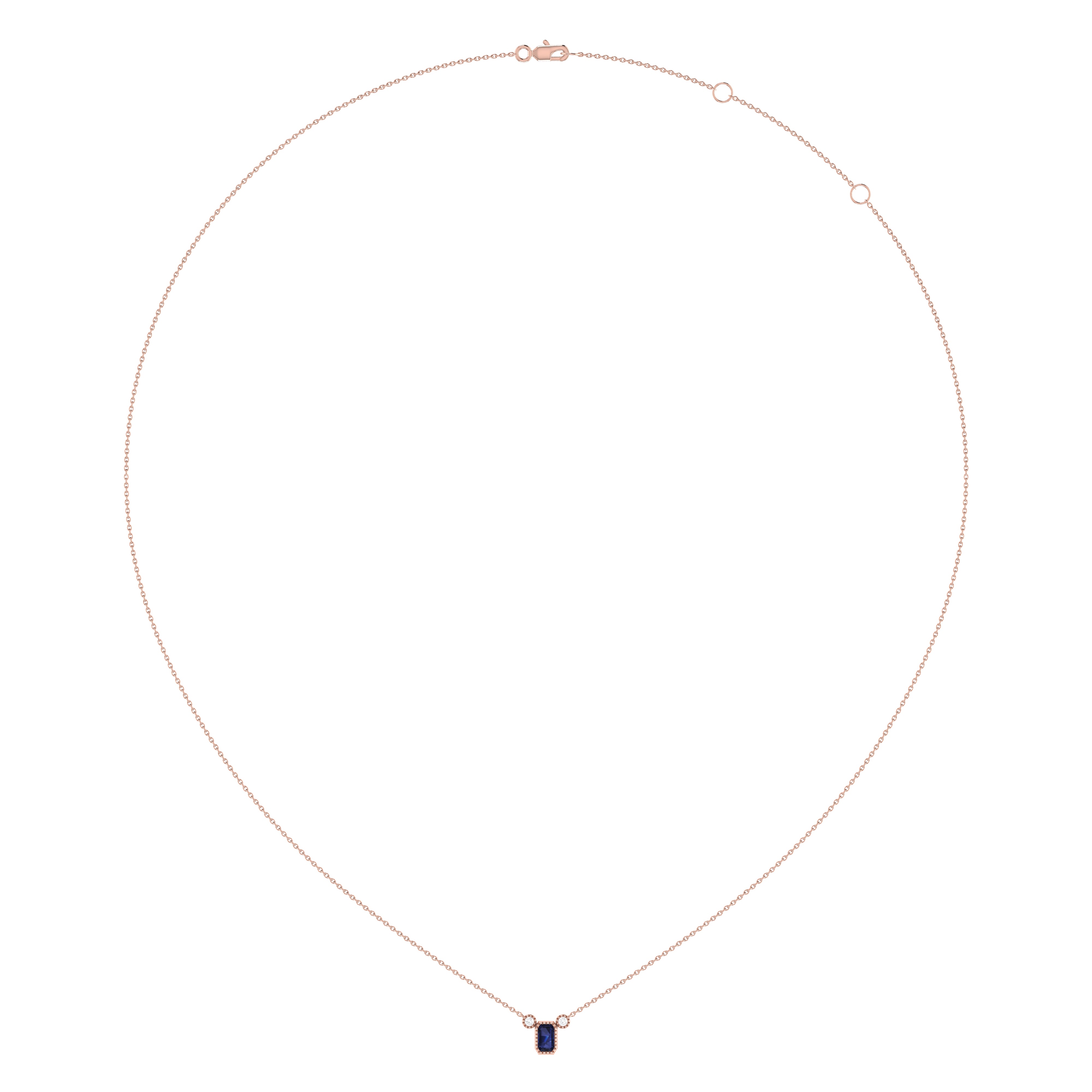 Emerald Cut Sapphire & Diamond Birthstone Necklace In 14K Rose Gold