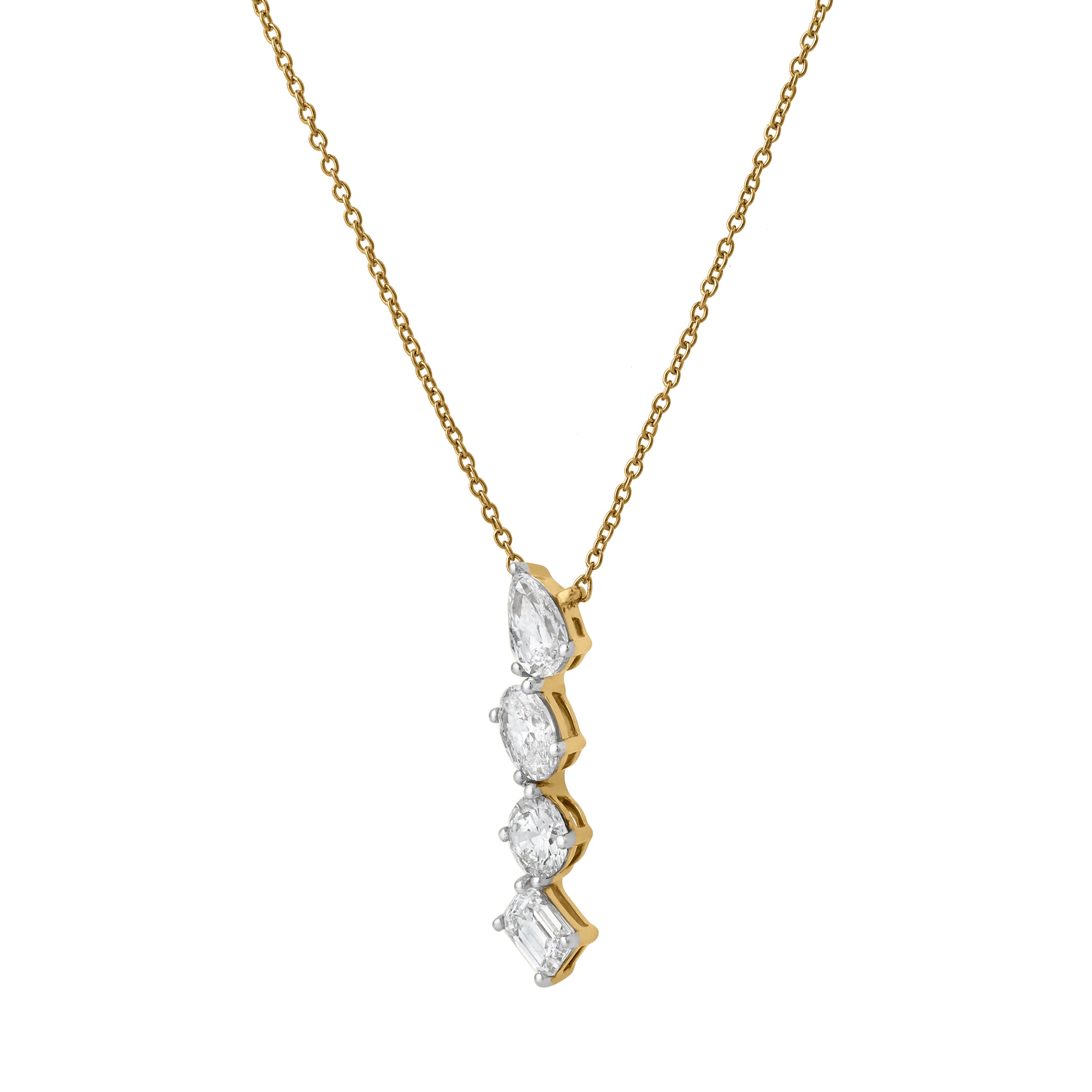 This elegant Nerisse drop necklace celebrates shape and symmetry with quiet strength. Crafted in 14K Yellow Gold with 1 ct of lab grown emerald oval pear and round cut diamonds. The vertical design brings graceful movement and refined dimension. Perfect as a standalone statement or layered for a modern look. The chain is 18 inches. Each piece is handmade with care and rooted in conscious craftsmanship. Diamond carat weight may vary up to 0.05 carats from the stated weight.