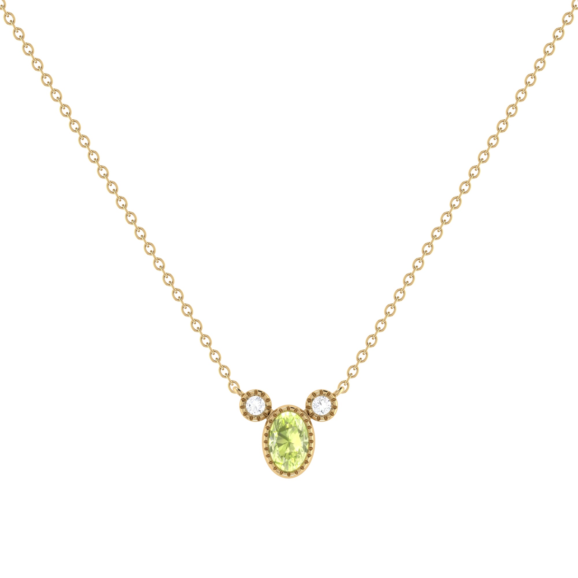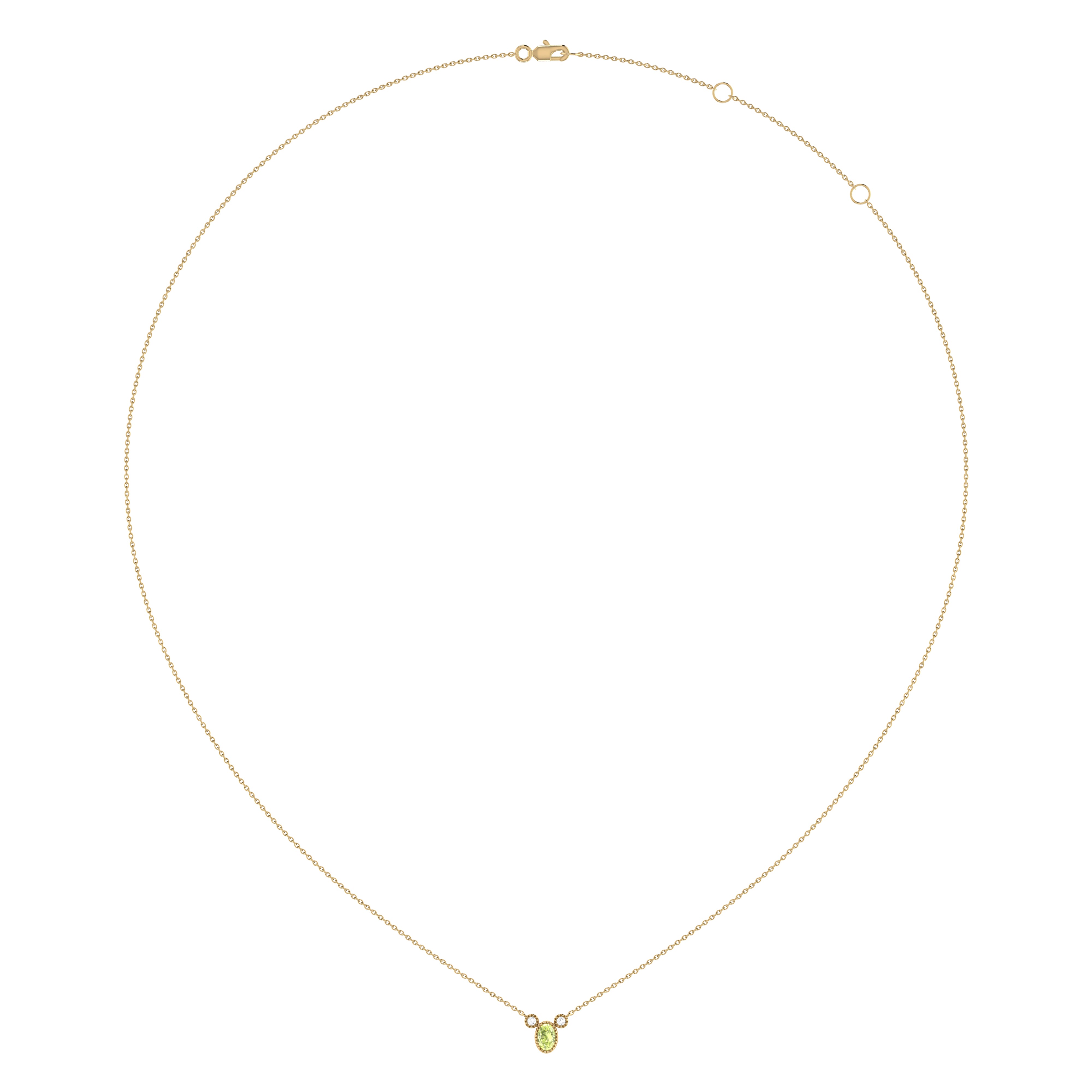 Oval Cut Peridot & Diamond Birthstone Necklace In 14K Yellow Gold