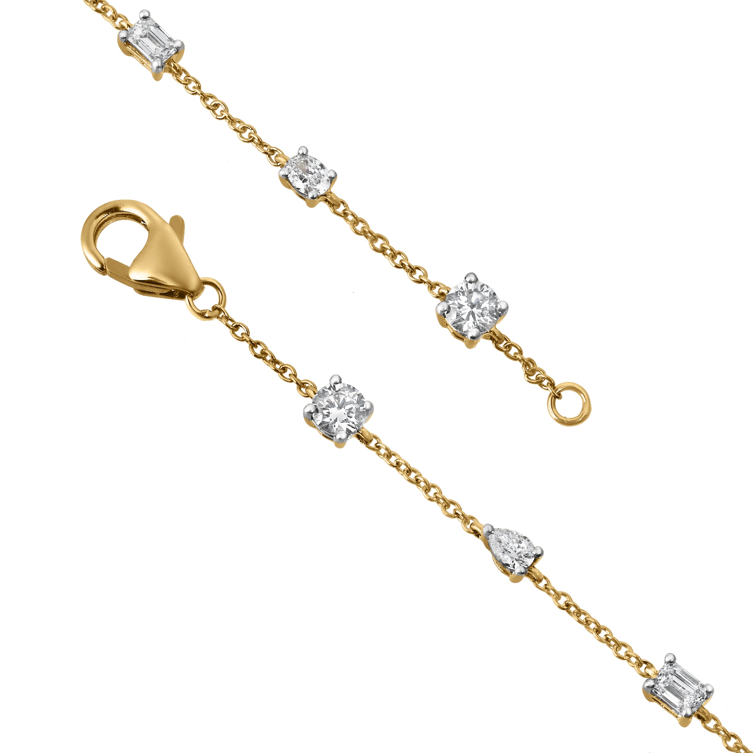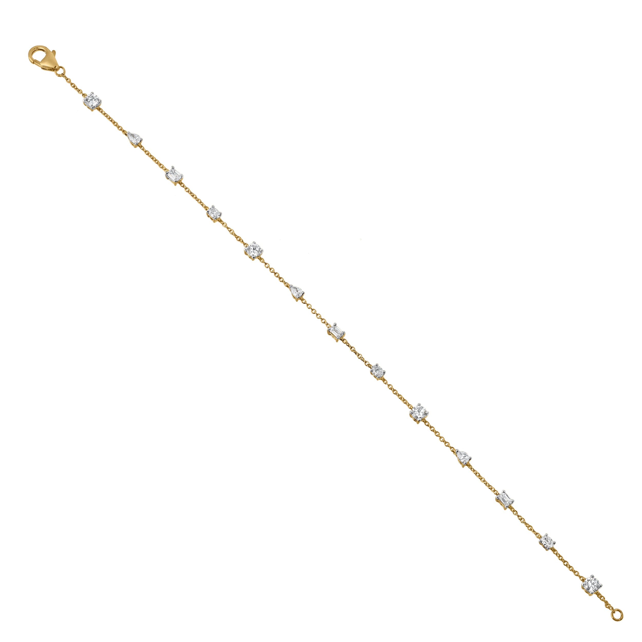 This Sigil station bracelet captures movement and light in perfect harmony. Crafted in 14K Yellow Gold with 1 ct of lab grown emerald oval pear and round cut diamonds. Each shape adds a distinct texture creating a soft flowing silhouette. Ideal for stacking or standing out on its own. Bracelets are available in sizes ranging from 6 to 8 inches. Handmade with care and rooted in responsible craftsmanship. Diamond carat weight may vary up to 0.05 carats from the stated weight.