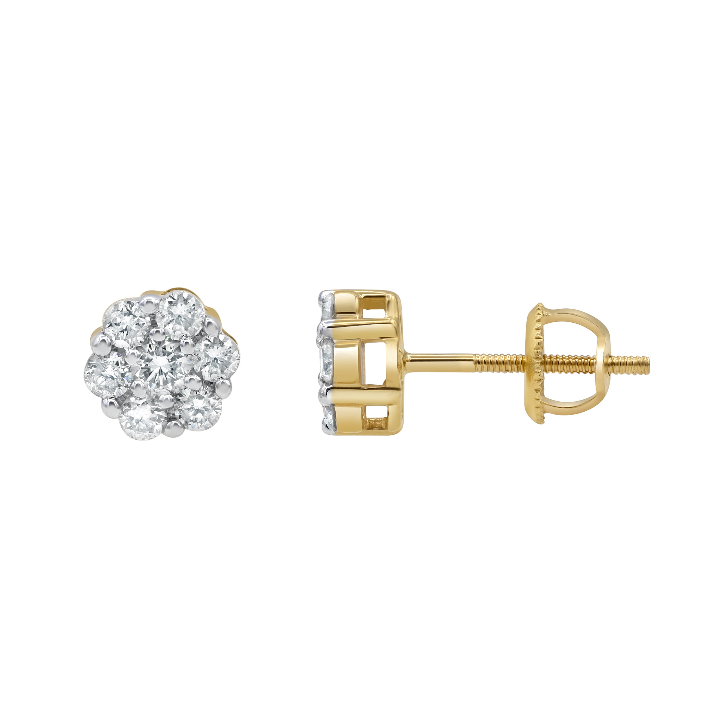 Sophisticated Cluster Stud 14K Yellow Gold Diamond Earrings 0.39 ct. tw.