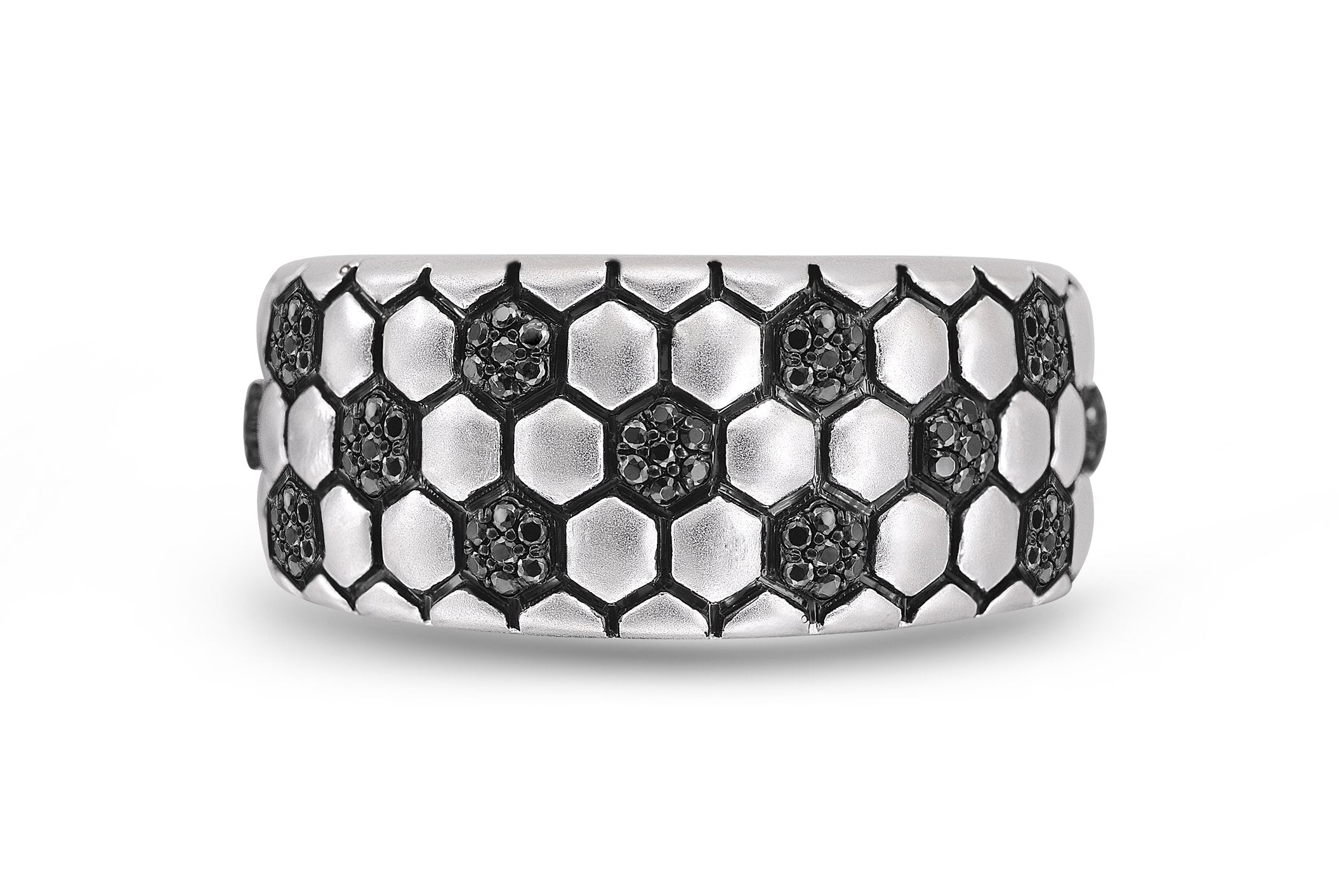Fast Track Black Rhodium Plated Sterling Silver Tire Tread Black Diamond Band Ring