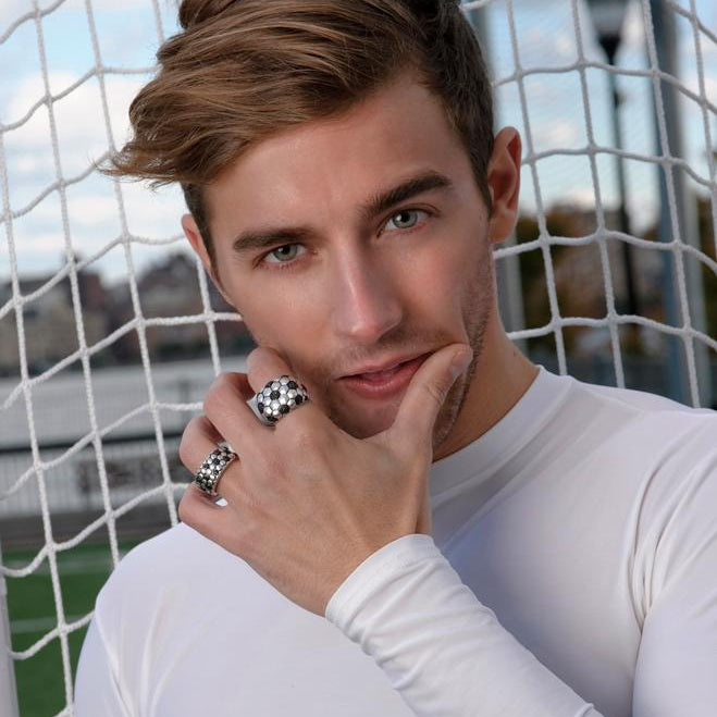 Kick & Goal Soccer Black Rhodium Plated Sterling Silver Black Diamond Band Ring