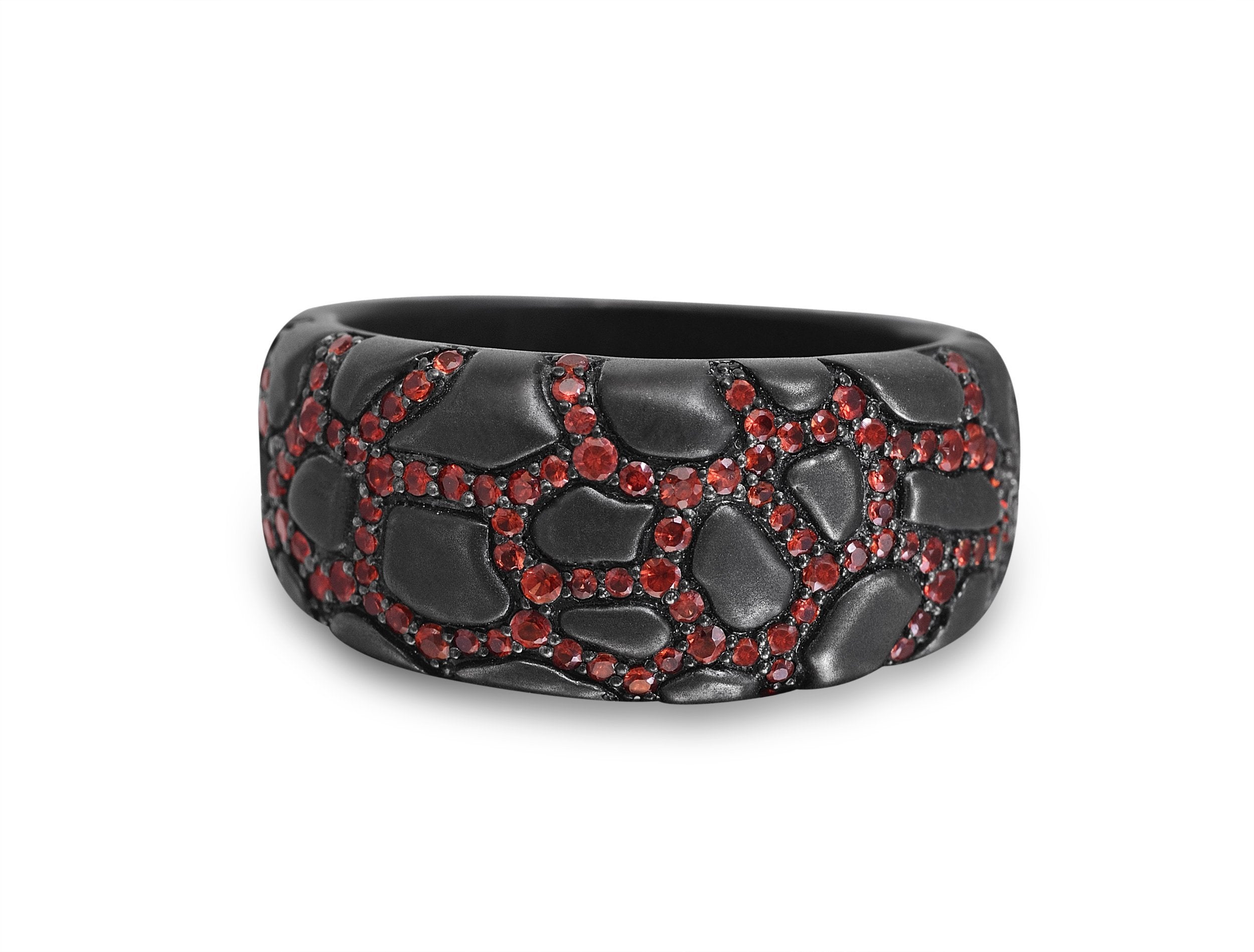 Fiery Ascent Black Rhodium Plated Sterling Silver Textured Band Ring with Garnets