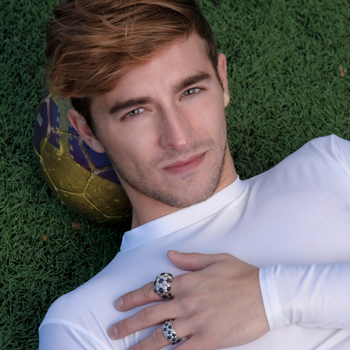 Kick & Goal Soccer Black Rhodium Plated Sterling Silver Black Diamond Head Ring