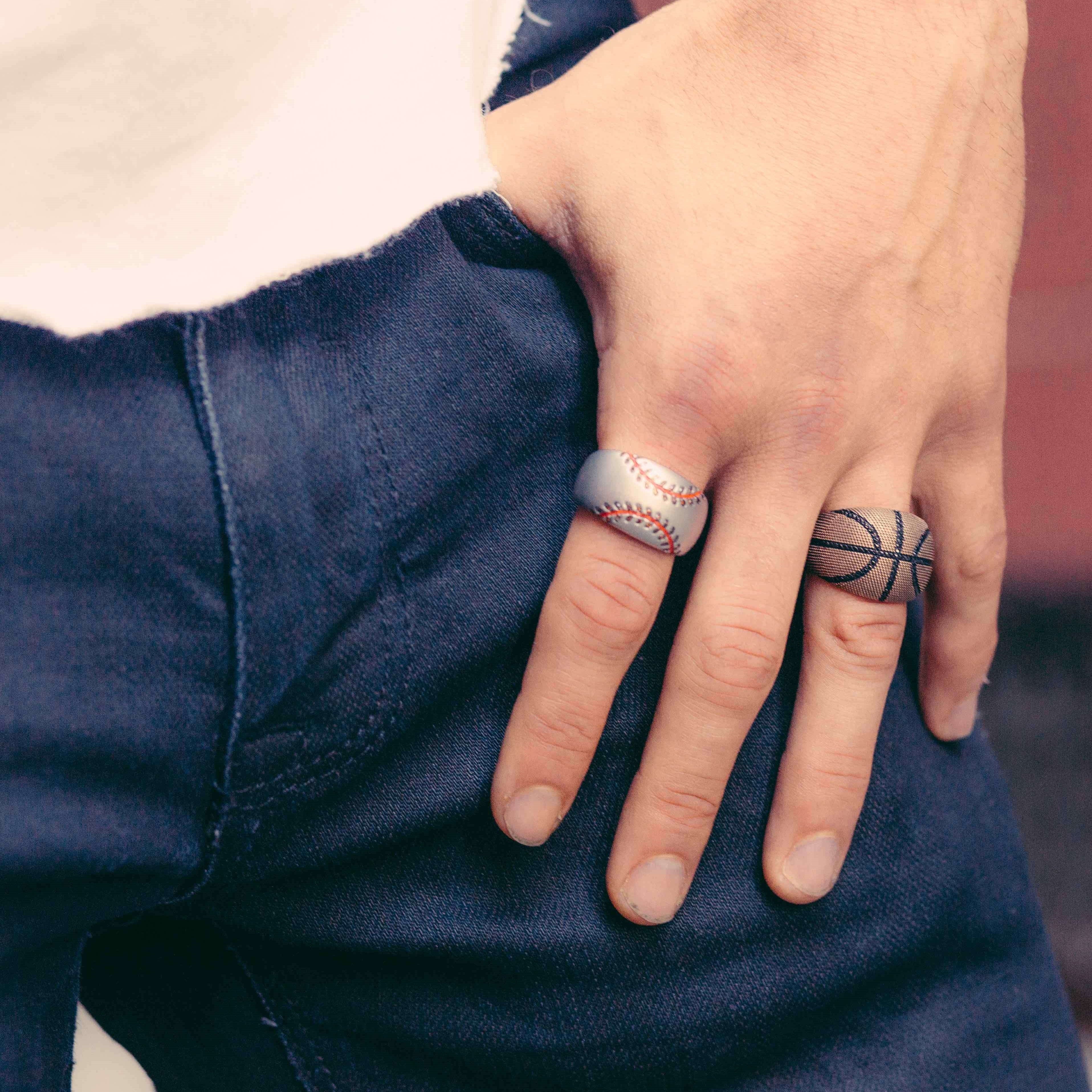 Home Run Baseball Sterling Silver Red Diamond & Enamel Band Ring