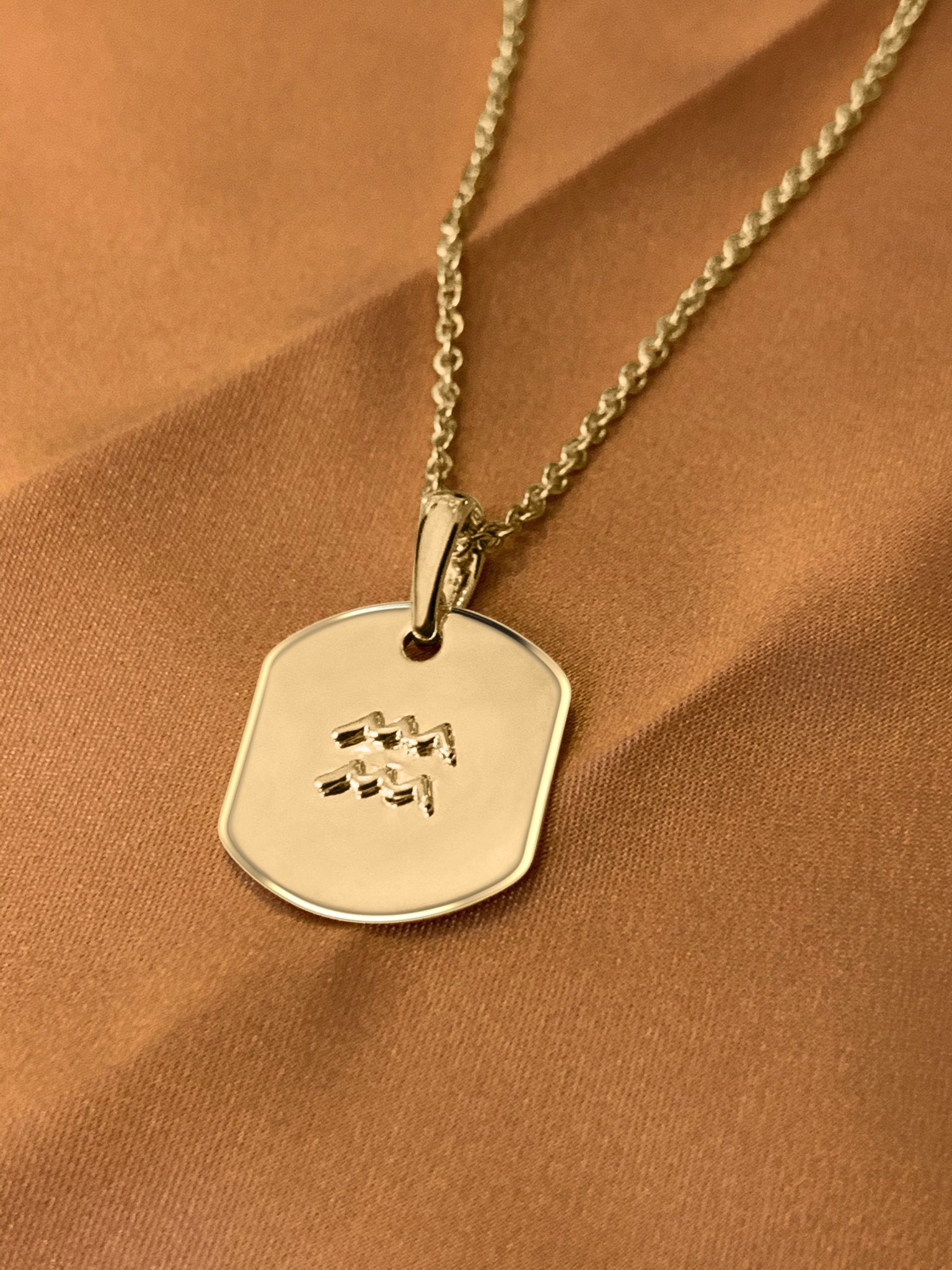 Aquarius Water-Bearer Amethyst & Diamond Constellation Tag Pendant Necklace in 14K Yellow Gold Vermeil on Sterling Silver