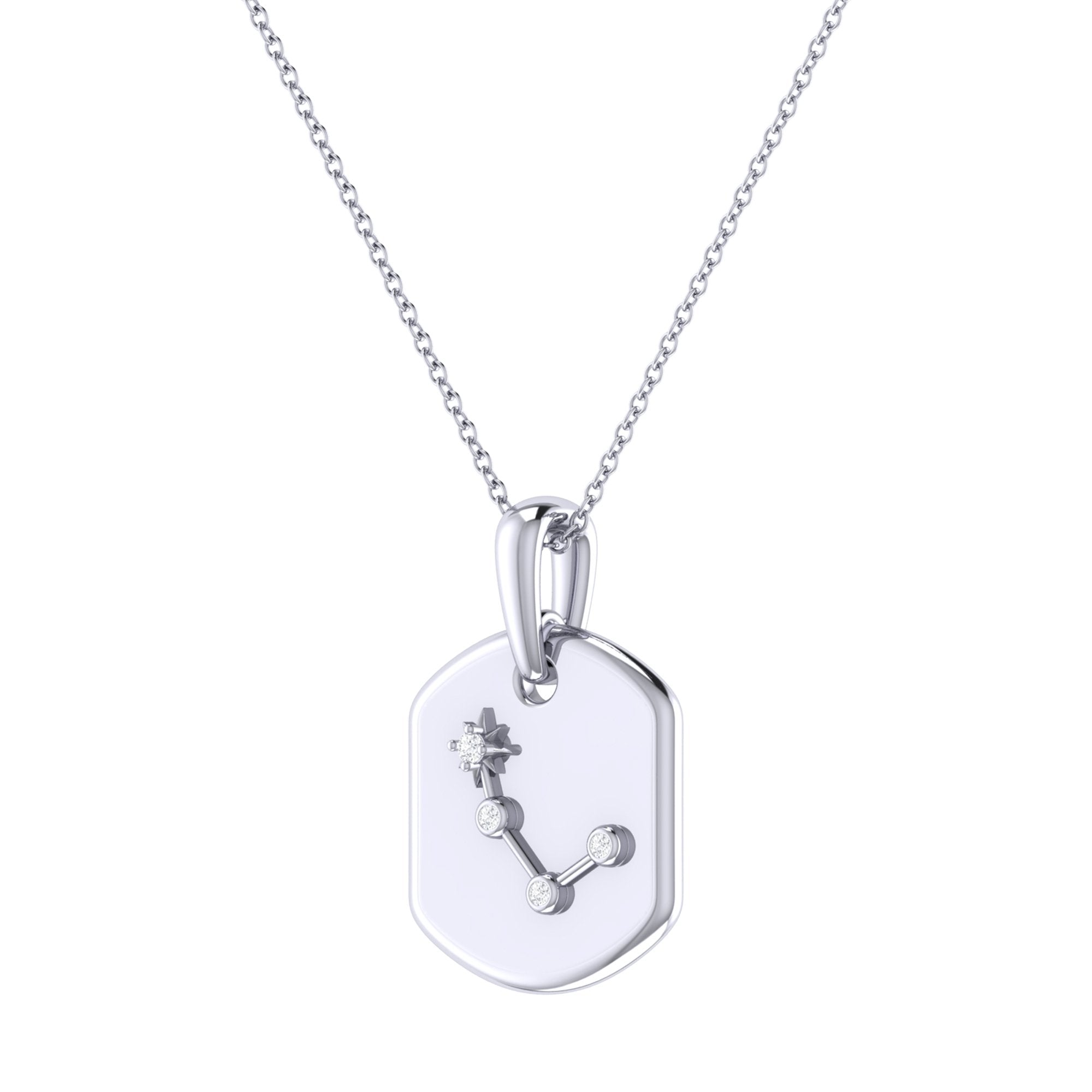 Aries Ram Diamond Constellation Tag Pendant Necklace in Sterling Silver