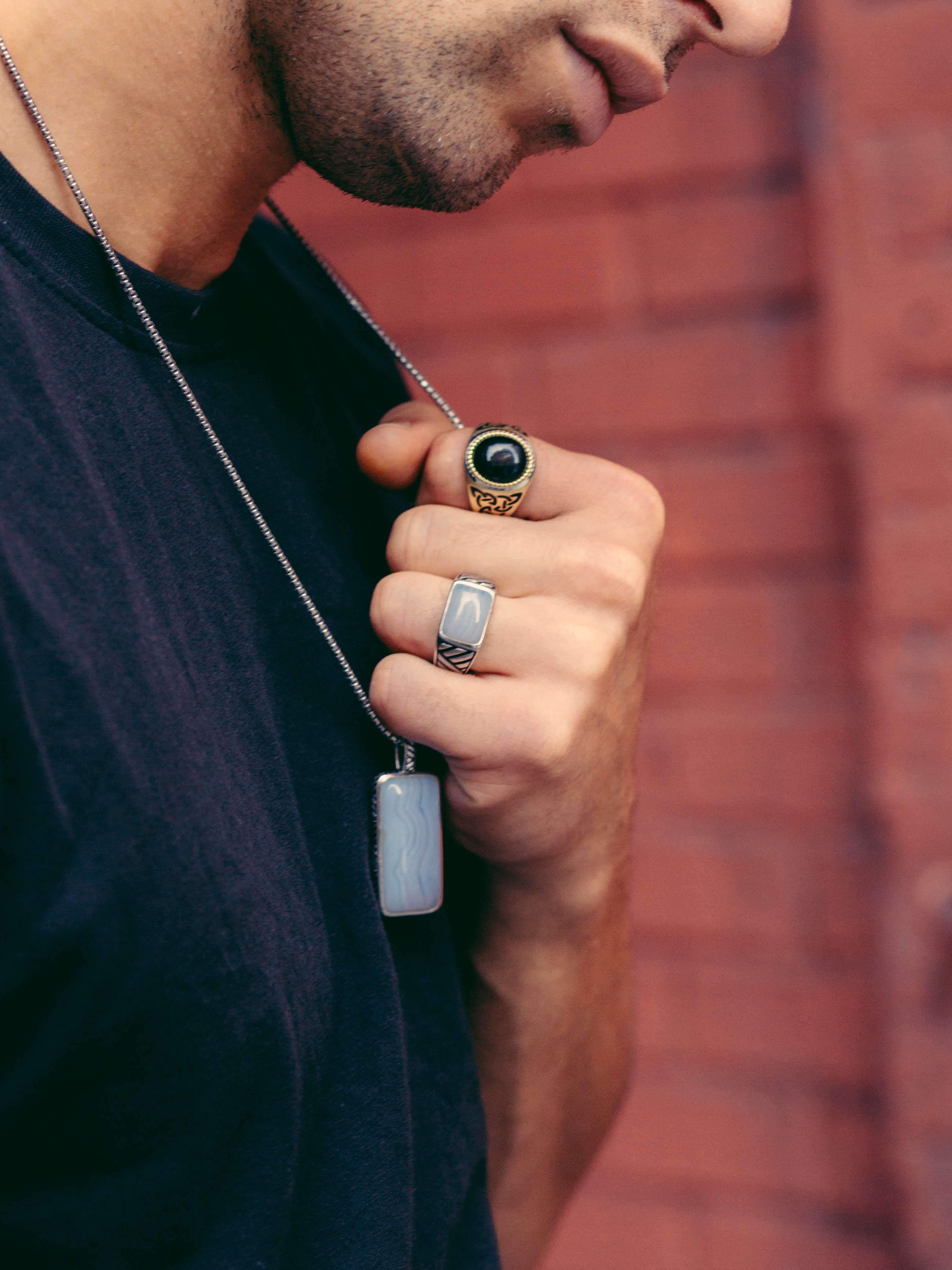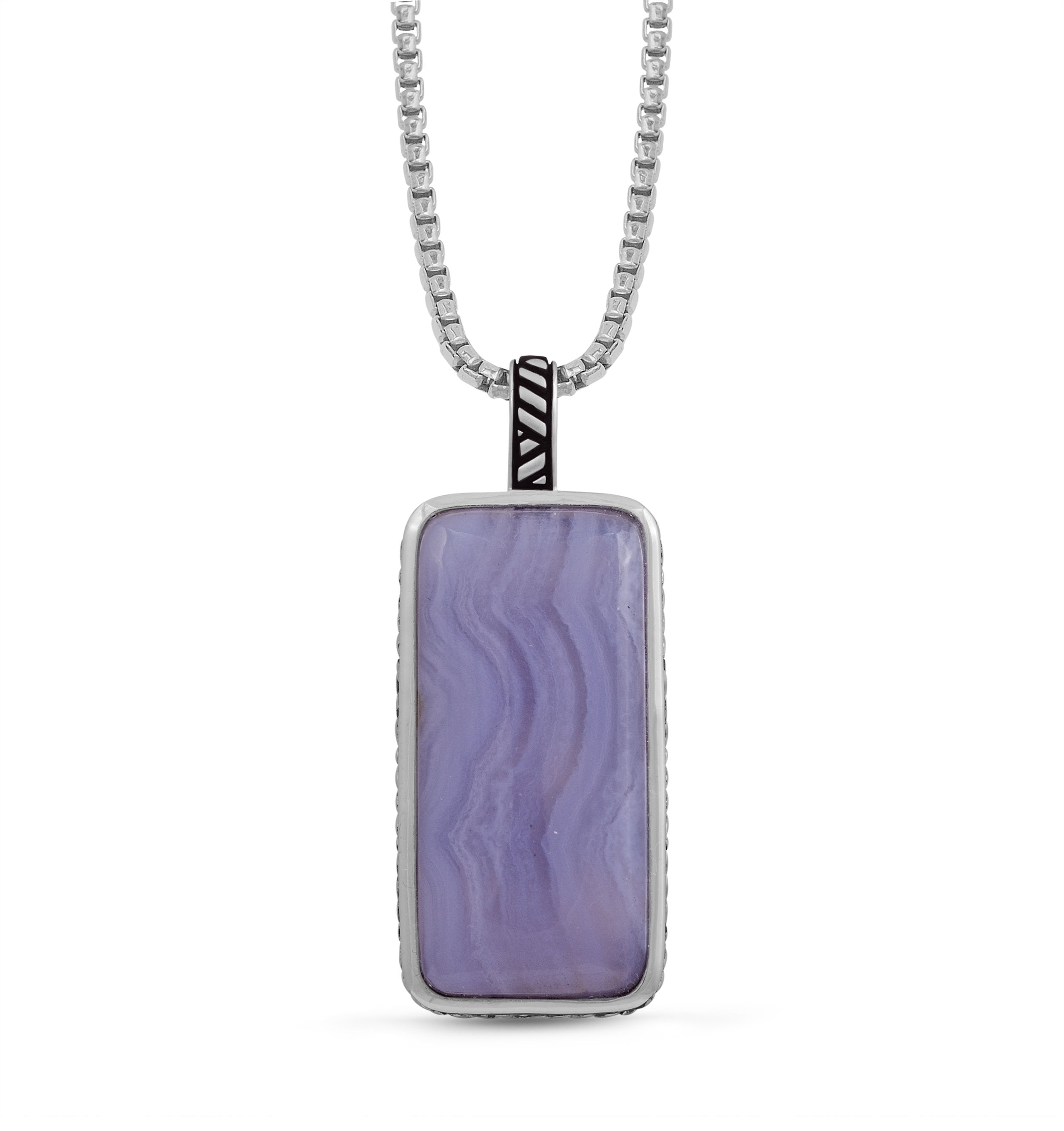 Our Blue Lace Agate Sterling Silver Tag Necklace combines refined style with natural charm. Ideal for the man who values a sophisticated and understated look.