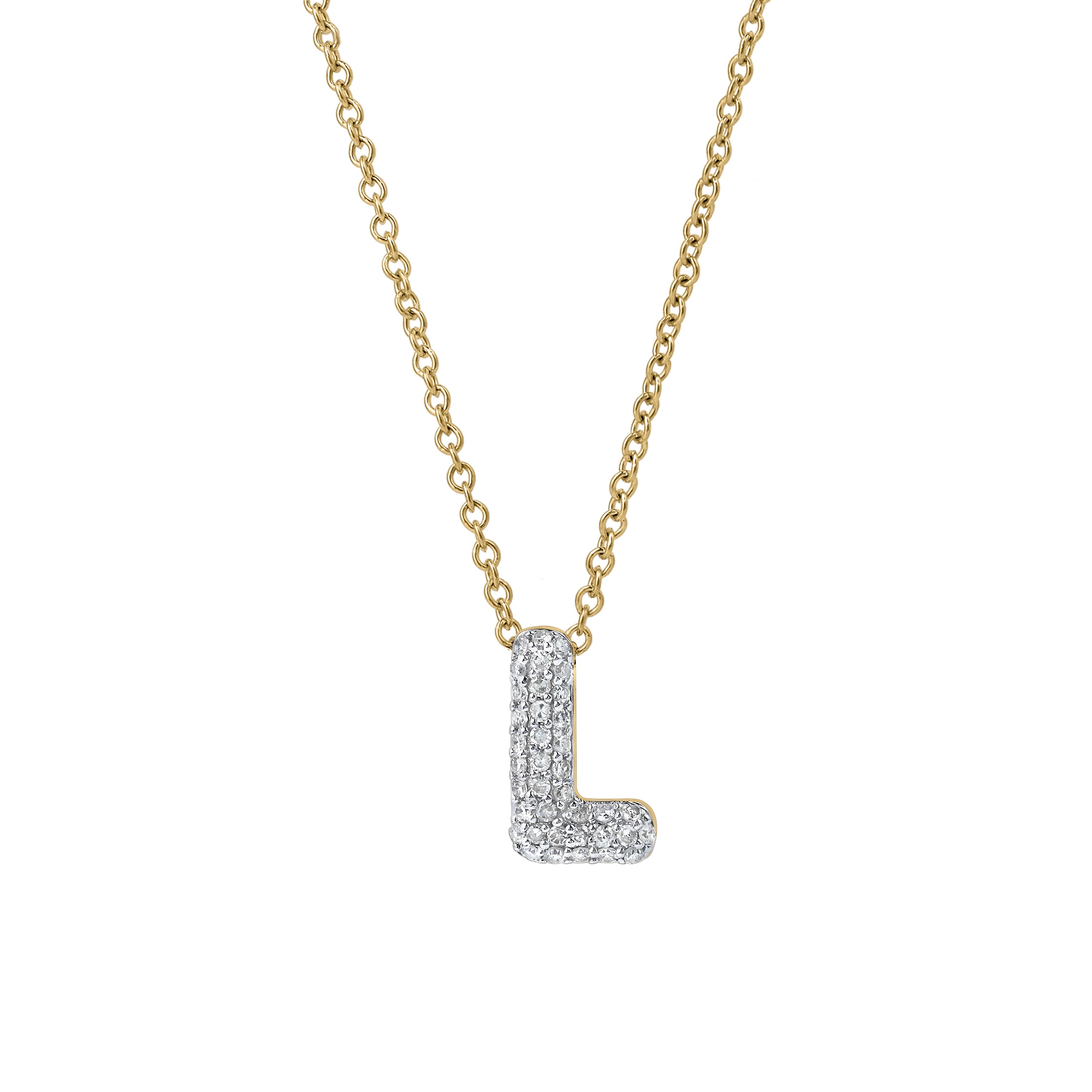 Bubble Initial Diamond Letter Pendant in 14K Gold – L