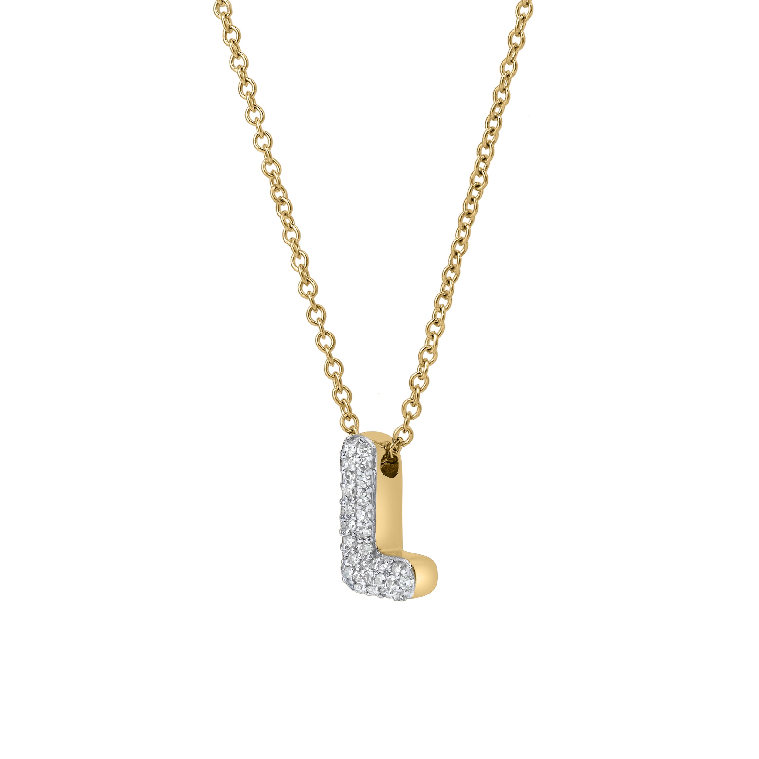 Celebrate your story with the Bubble Initial "L" Diamond Pendant. Crafted in 14K gold, this charming piece features a bold bubble-style “L” initial adorned with 0.24 carats of shimmering lab grown diamonds. The playful curves of the bubble letter are elevated with diamond brilliance, making it a perfect balance of fun and elegance.