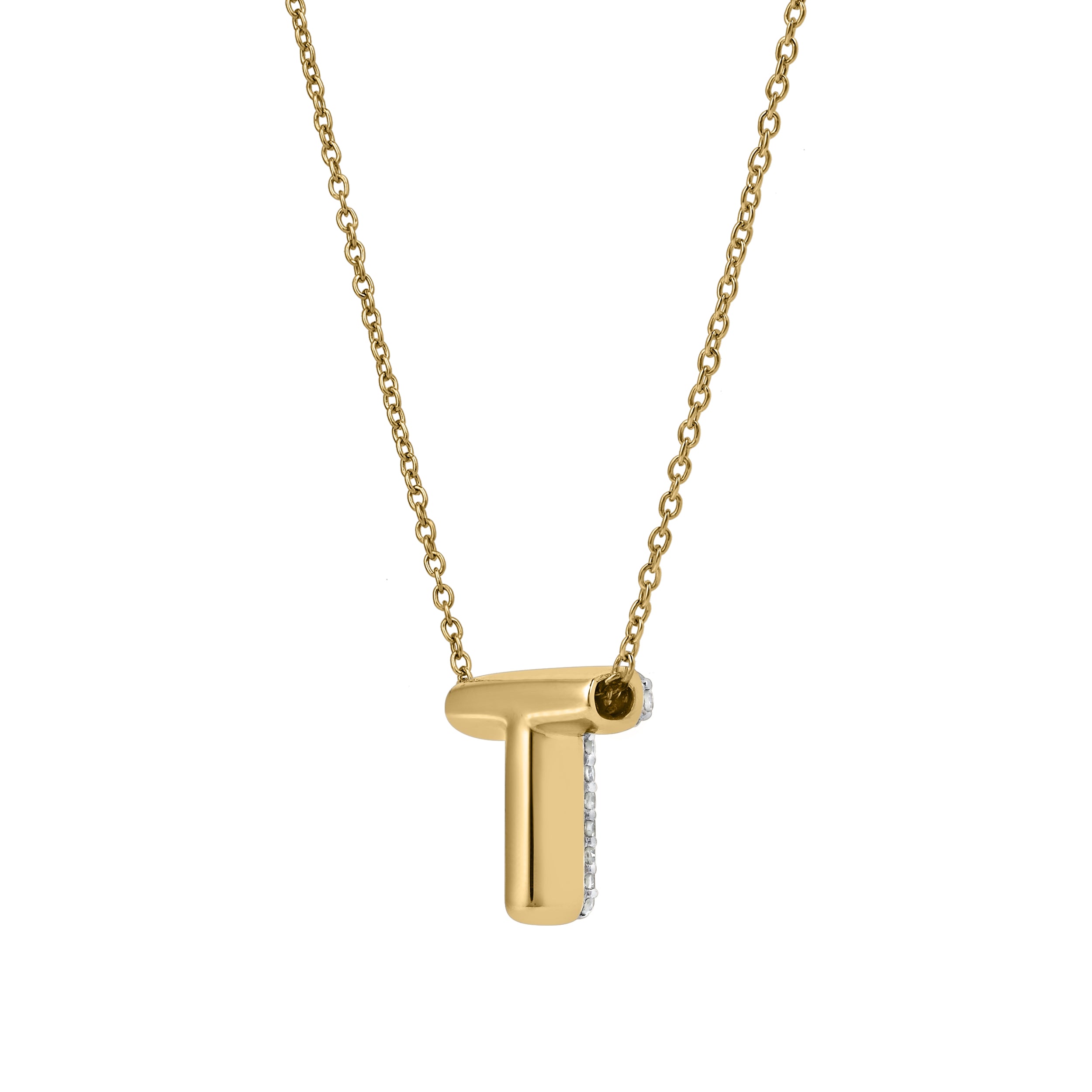 Bubble Initial Diamond Letter Pendant in 14K Gold – T
