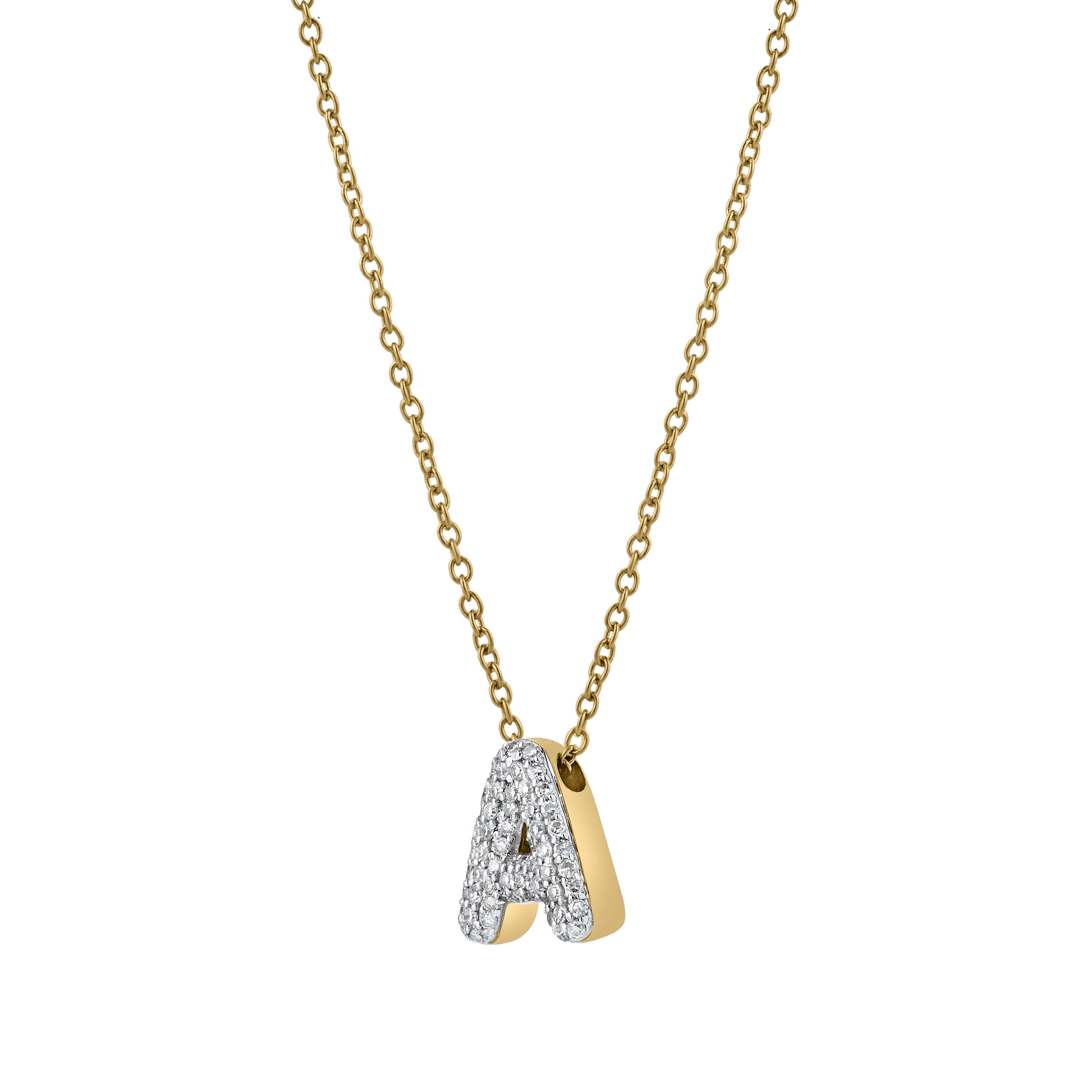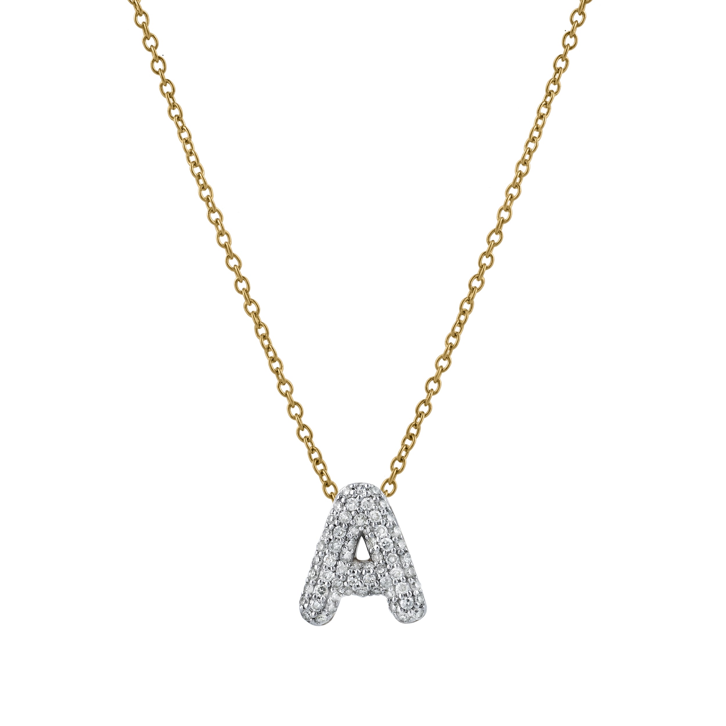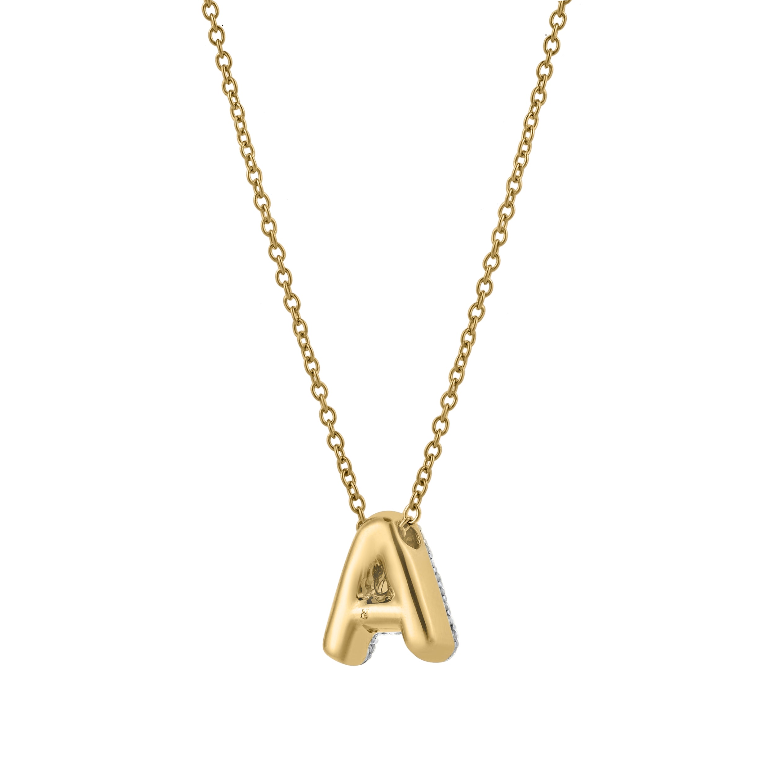 Bubble Initial Diamond Letter Pendant in 14K Yellow Gold - A