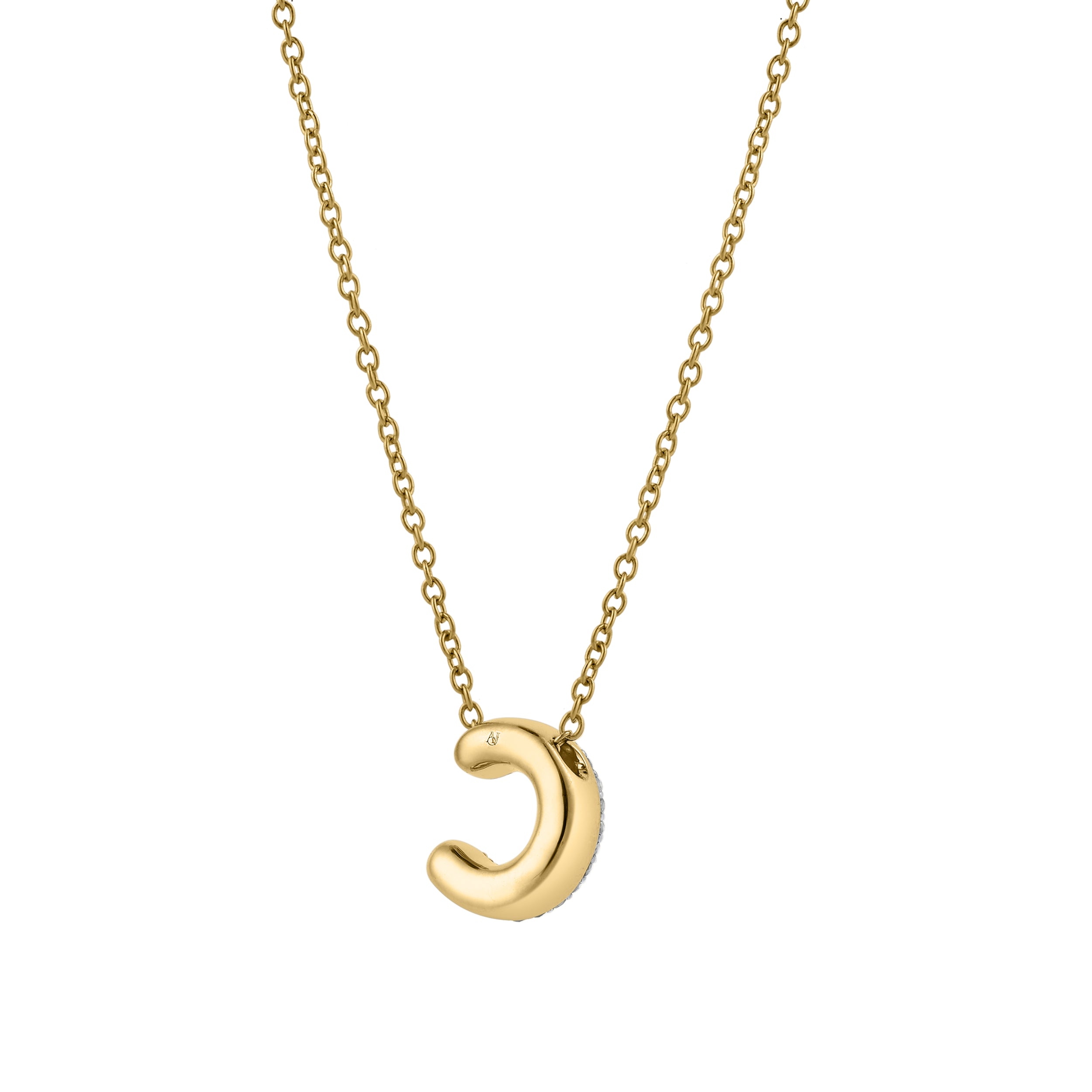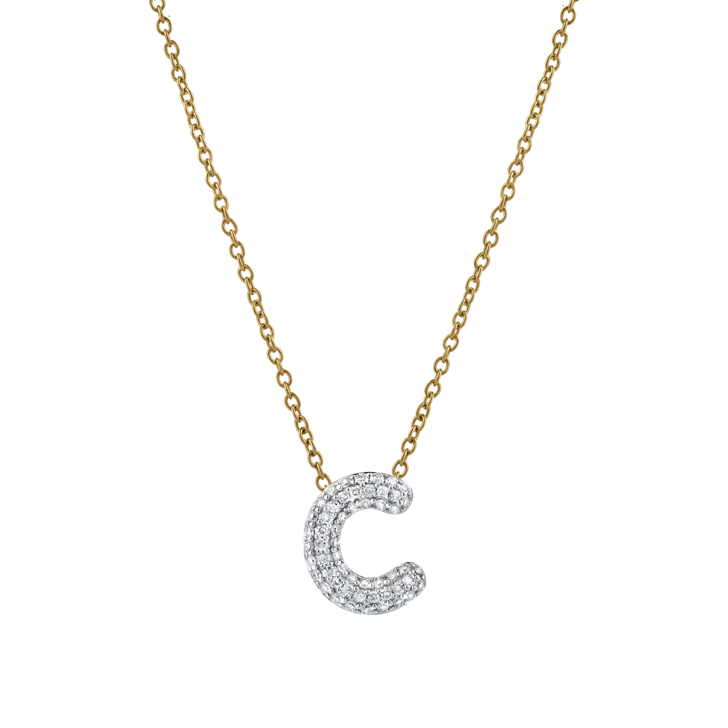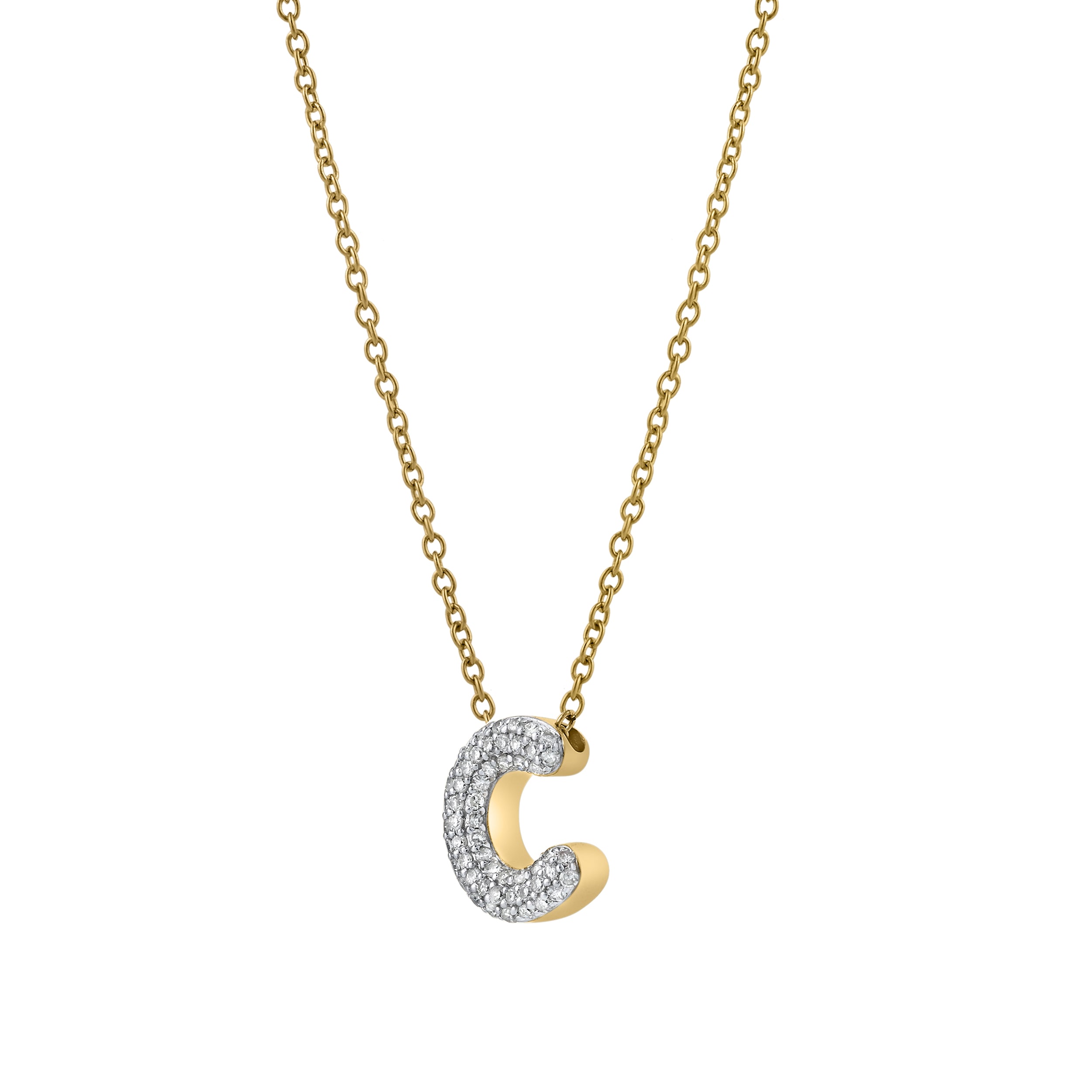 Bubble Initial Diamond Letter Pendant in 14K Yellow Gold - C