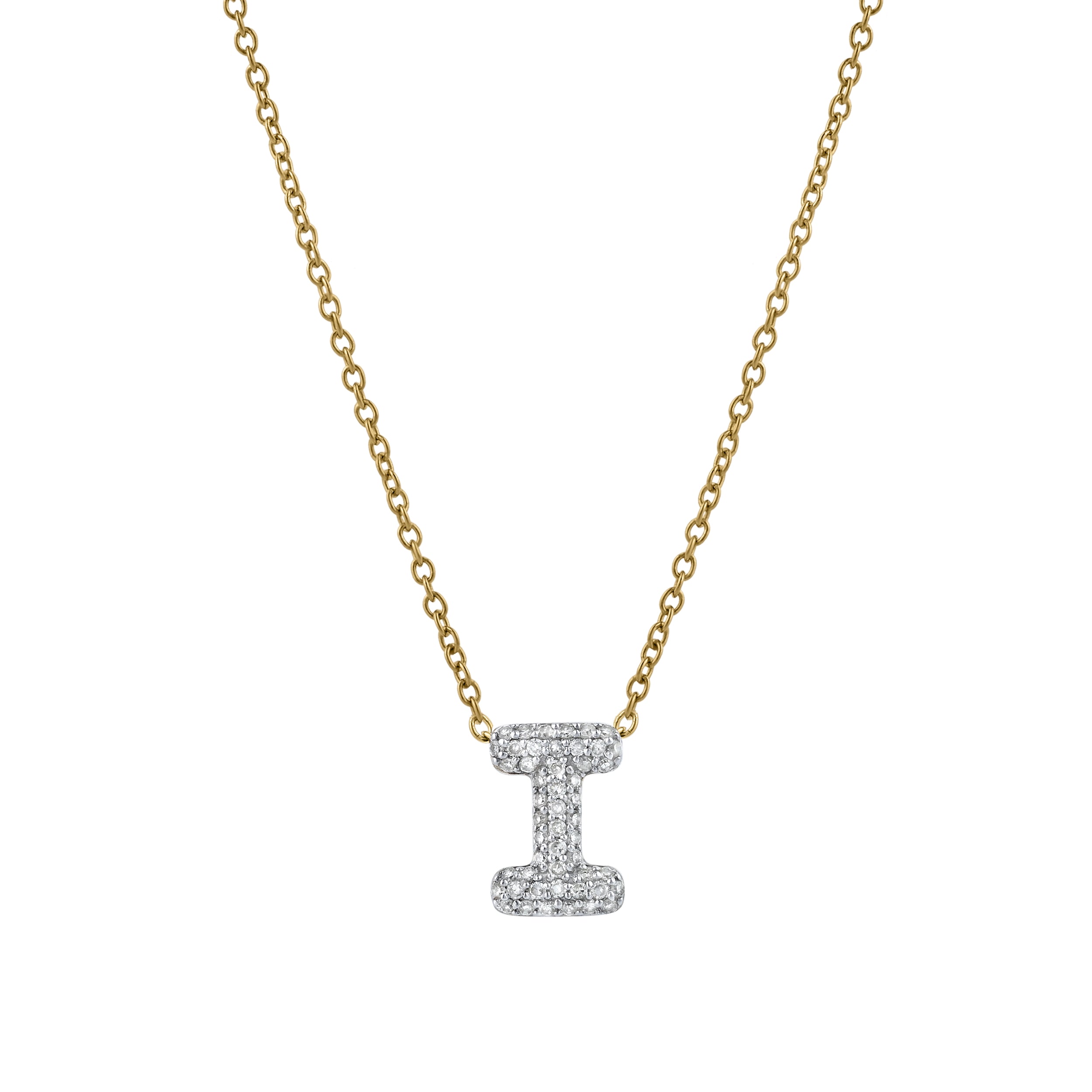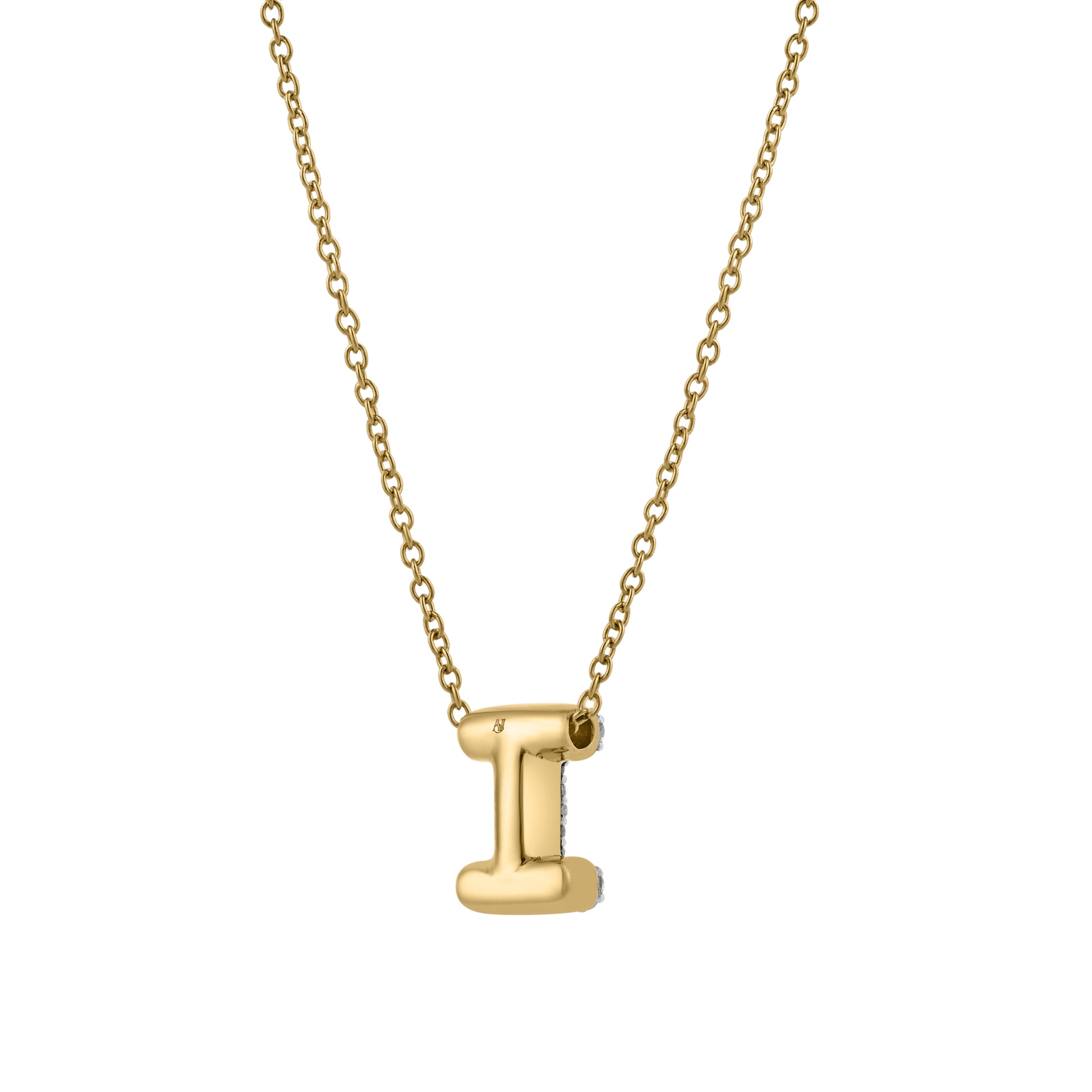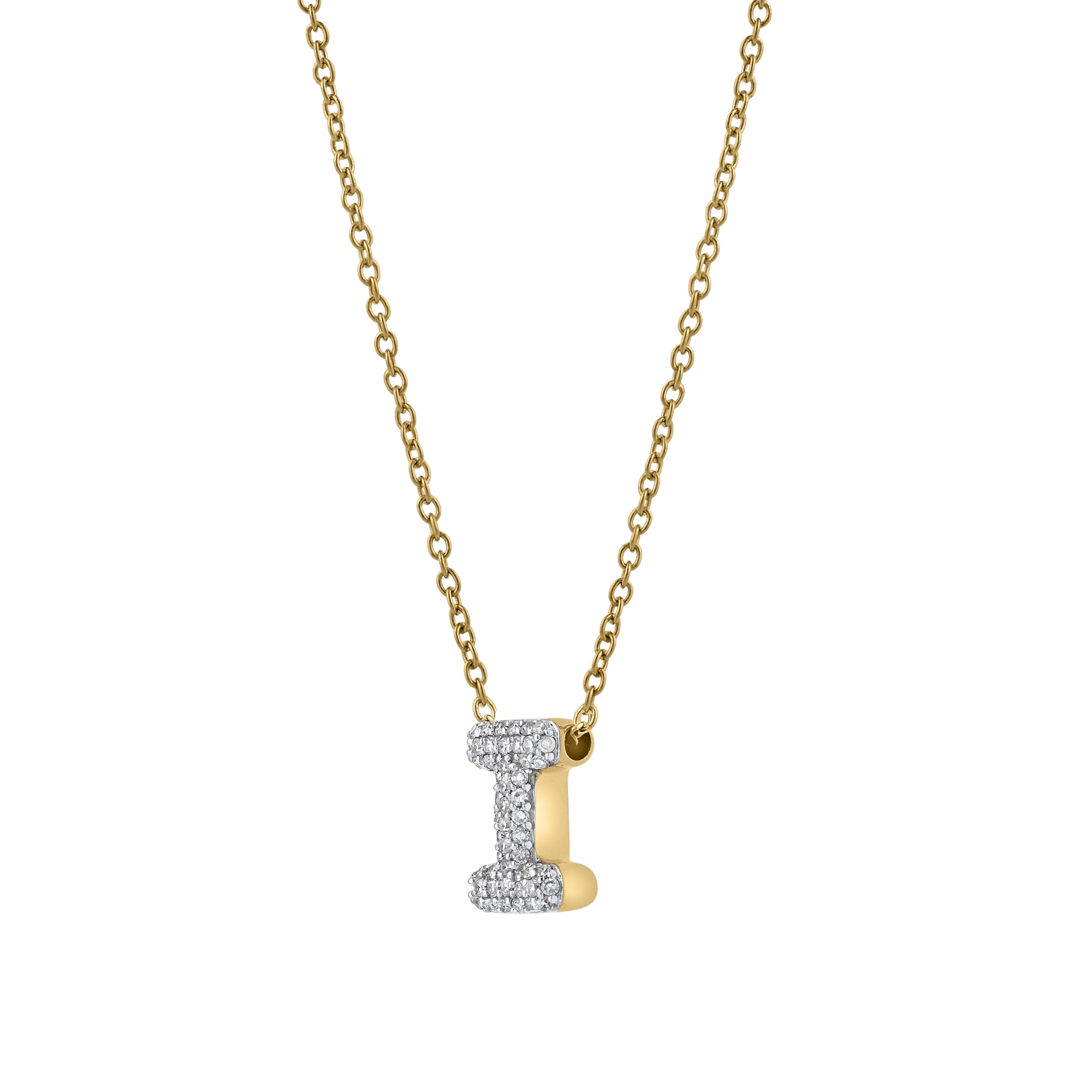 Bubble Initial Diamond Letter Pendant in 14K Yellow Gold - I