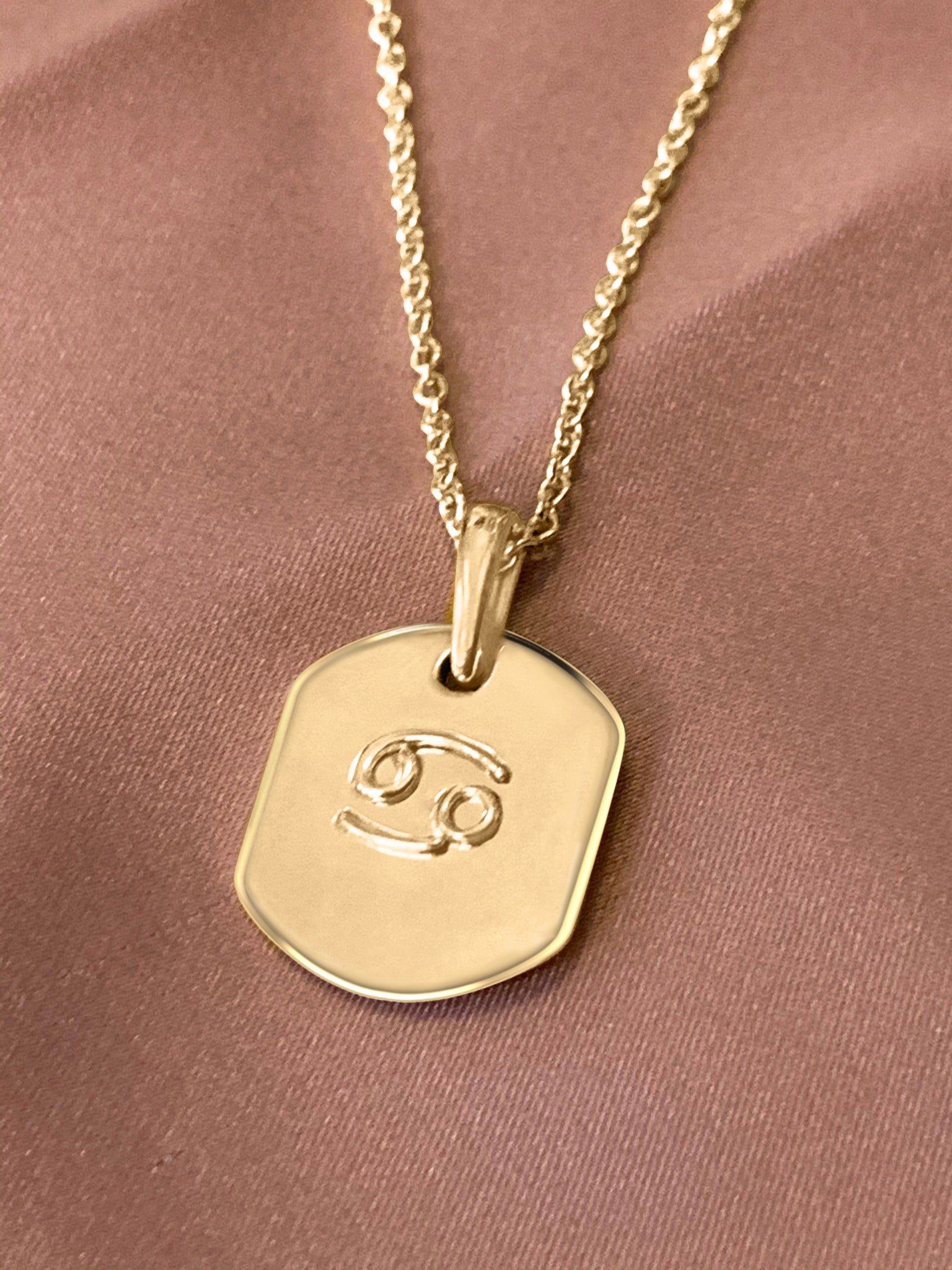 Cancer Crab Ruby & Diamond Constellation Tag Pendant Necklace in 14K Yellow Gold Vermeil on Sterling Silver