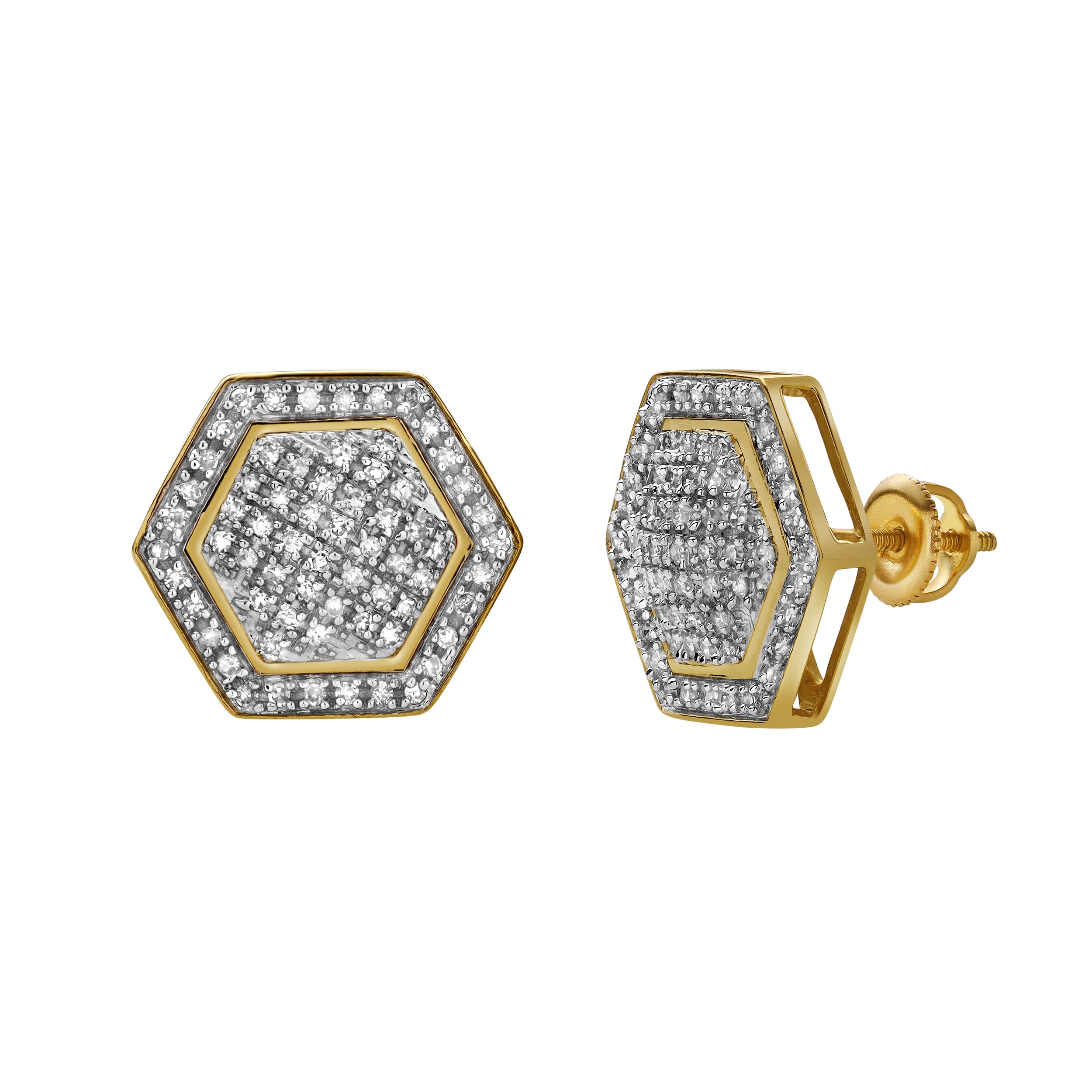 These gorgeous 0.56 carat diamond earrings feature a elegant cluster design meticulously set in 10K yellow gold with a screwback setting. Their elegant arrangement highlights the timeless brilliance of the diamonds.