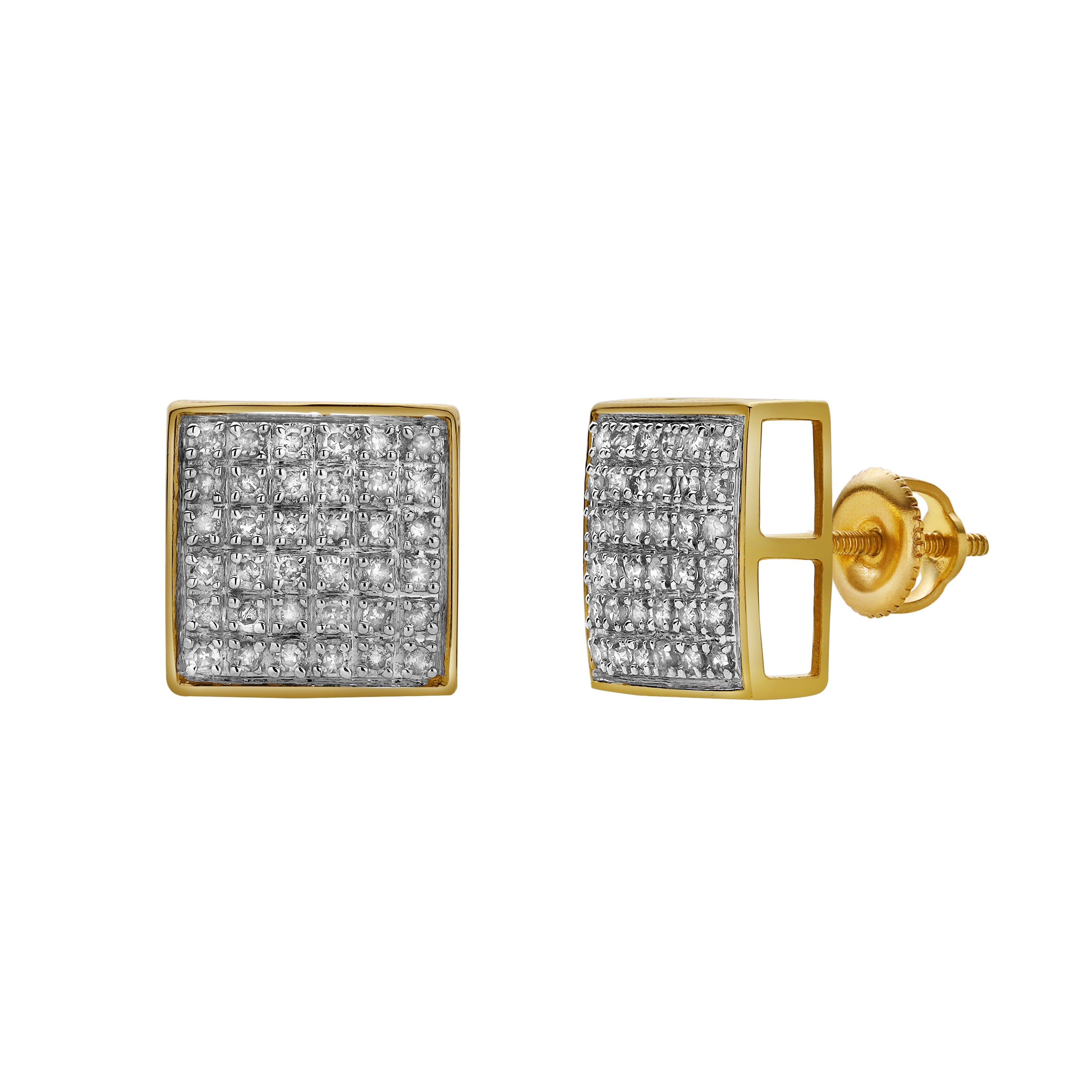 These gorgeous 0.34 carat diamond earrings feature a elegant cluster design meticulously set in 10K yellow gold with a screwback setting. Their elegant arrangement highlights the timeless brilliance of the diamonds.