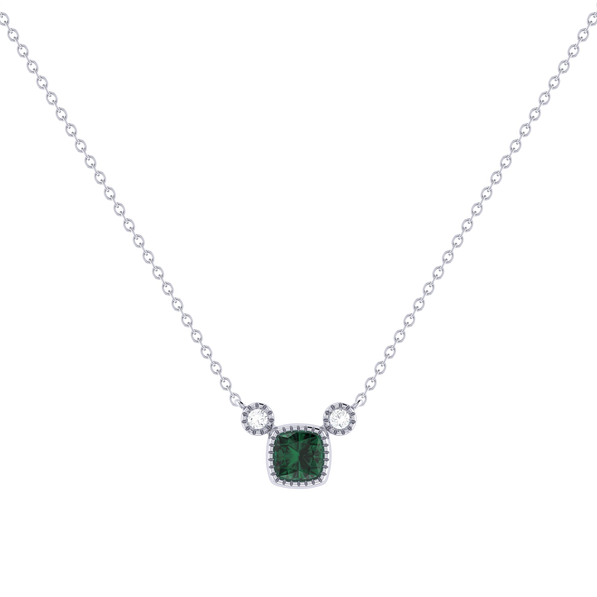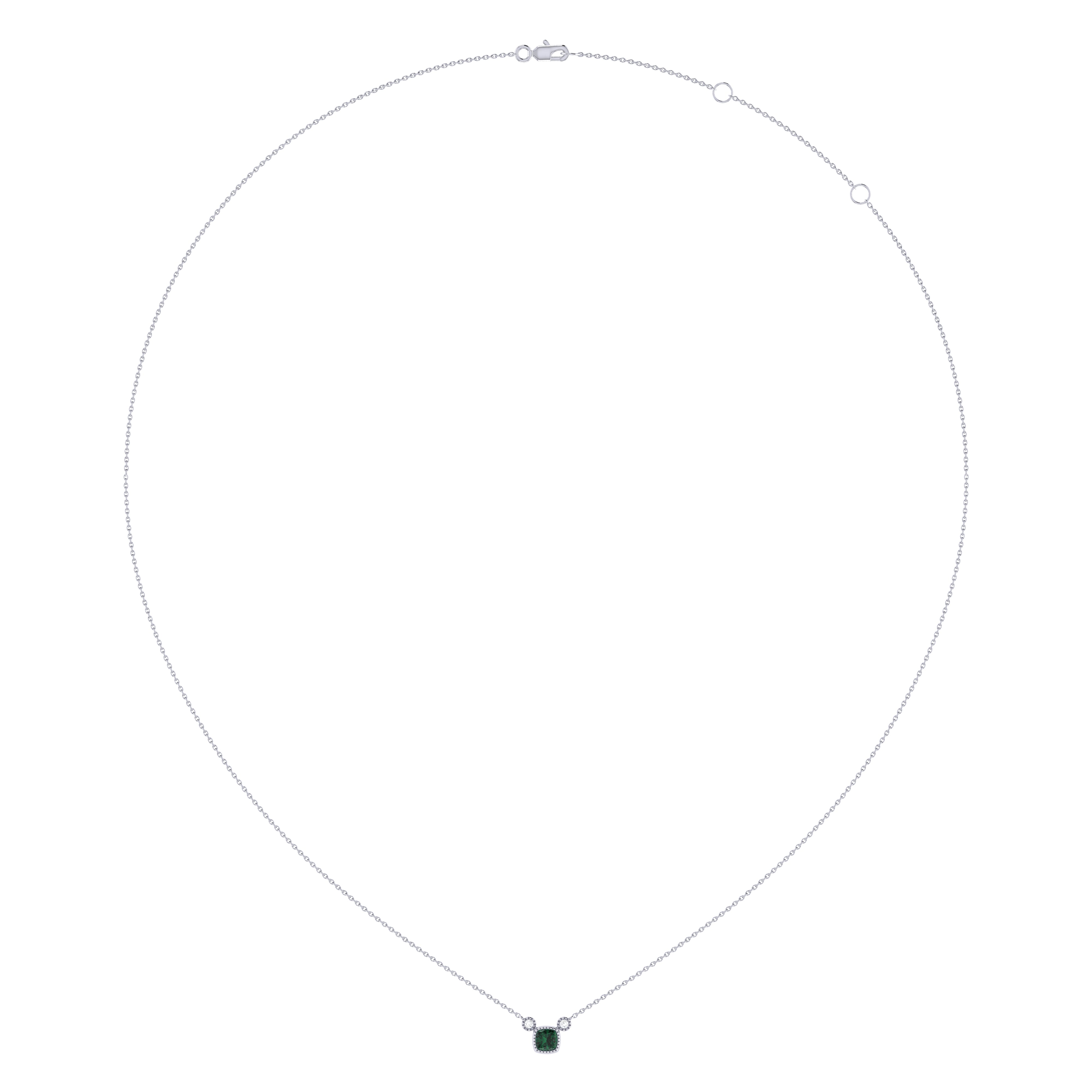 Cushion Cut Emerald & Diamond Birthstone Necklace In 14K White Gold