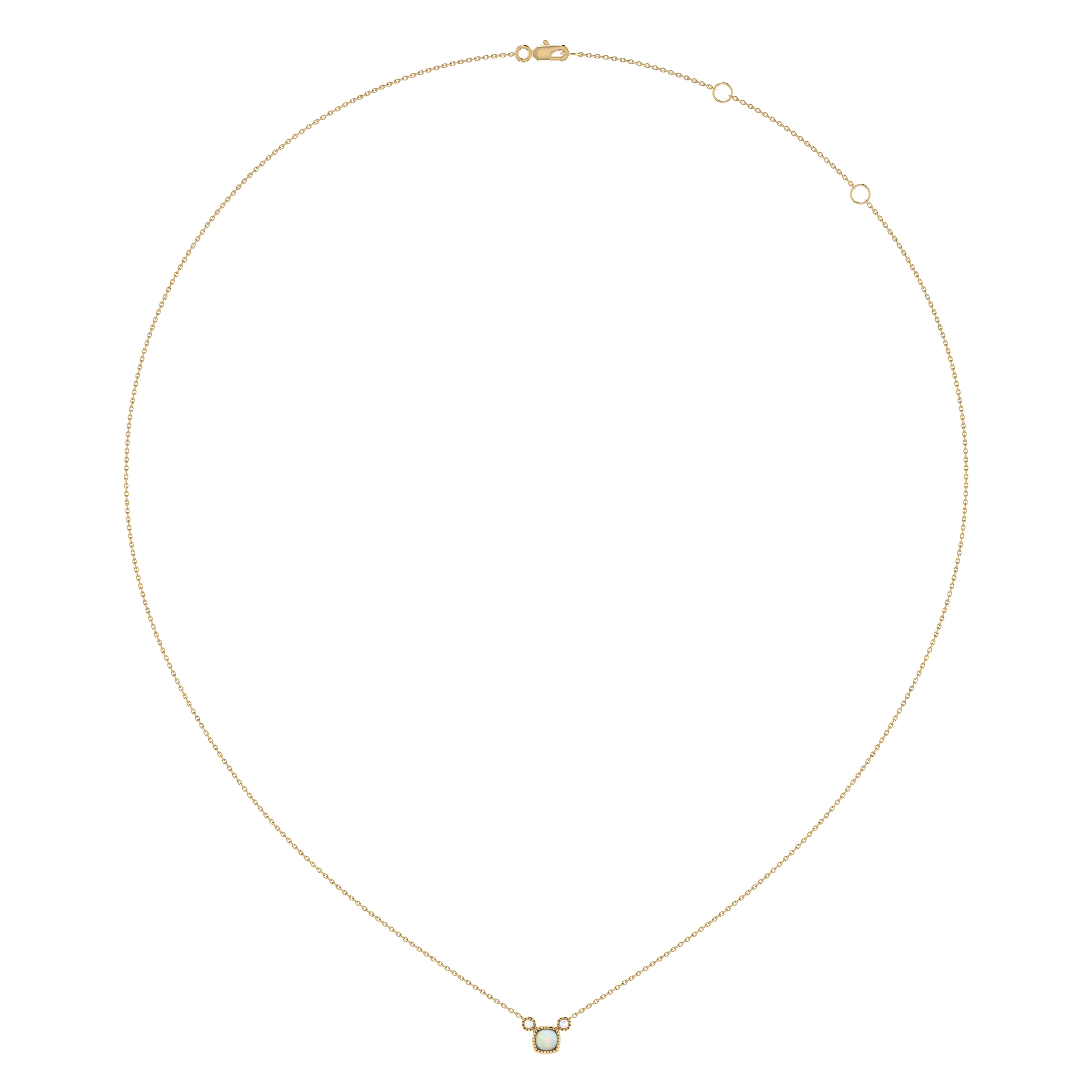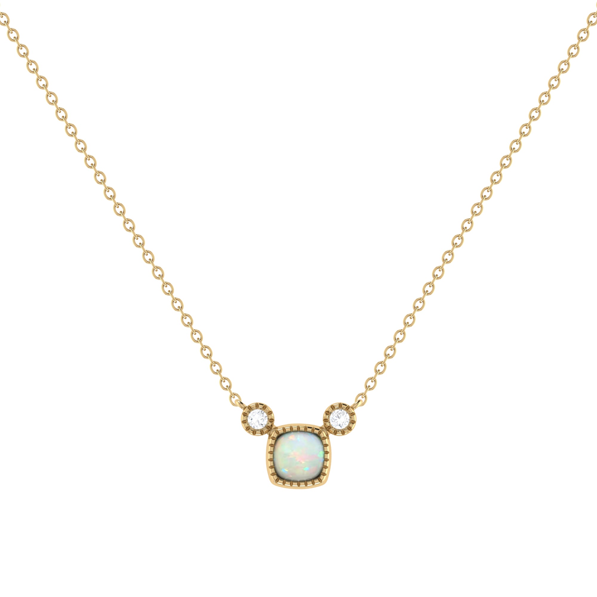 Cushion Cut Opal & Diamond Birthstone Necklace In 14K Yellow Gold