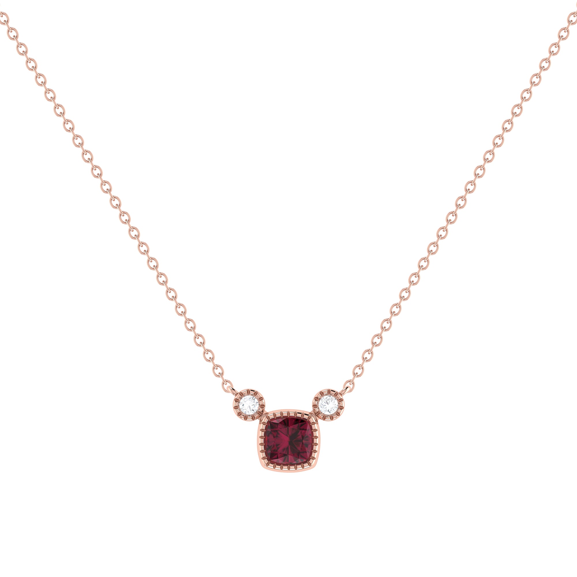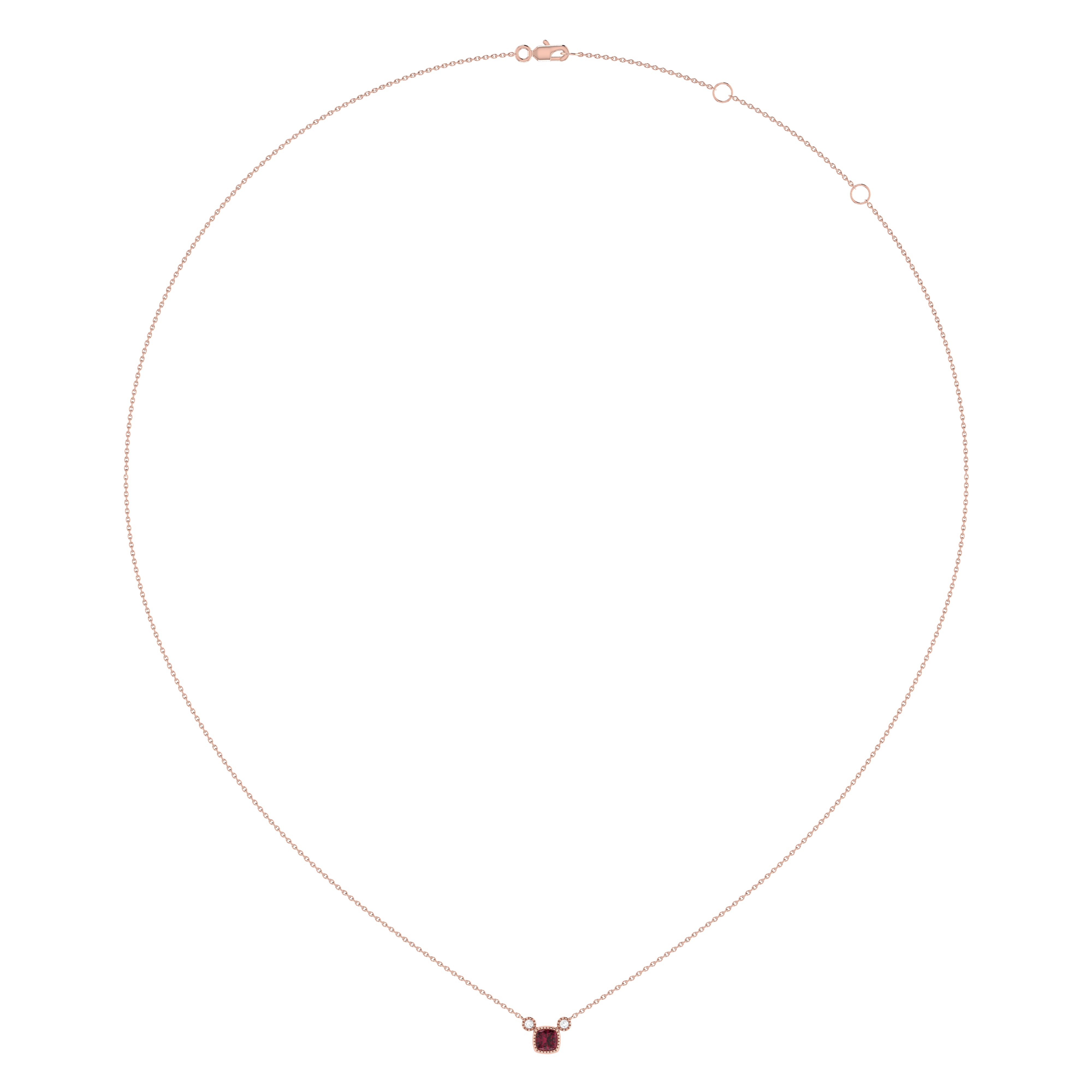 Cushion Cut Ruby & Diamond Birthstone Necklace In 14K Rose Gold