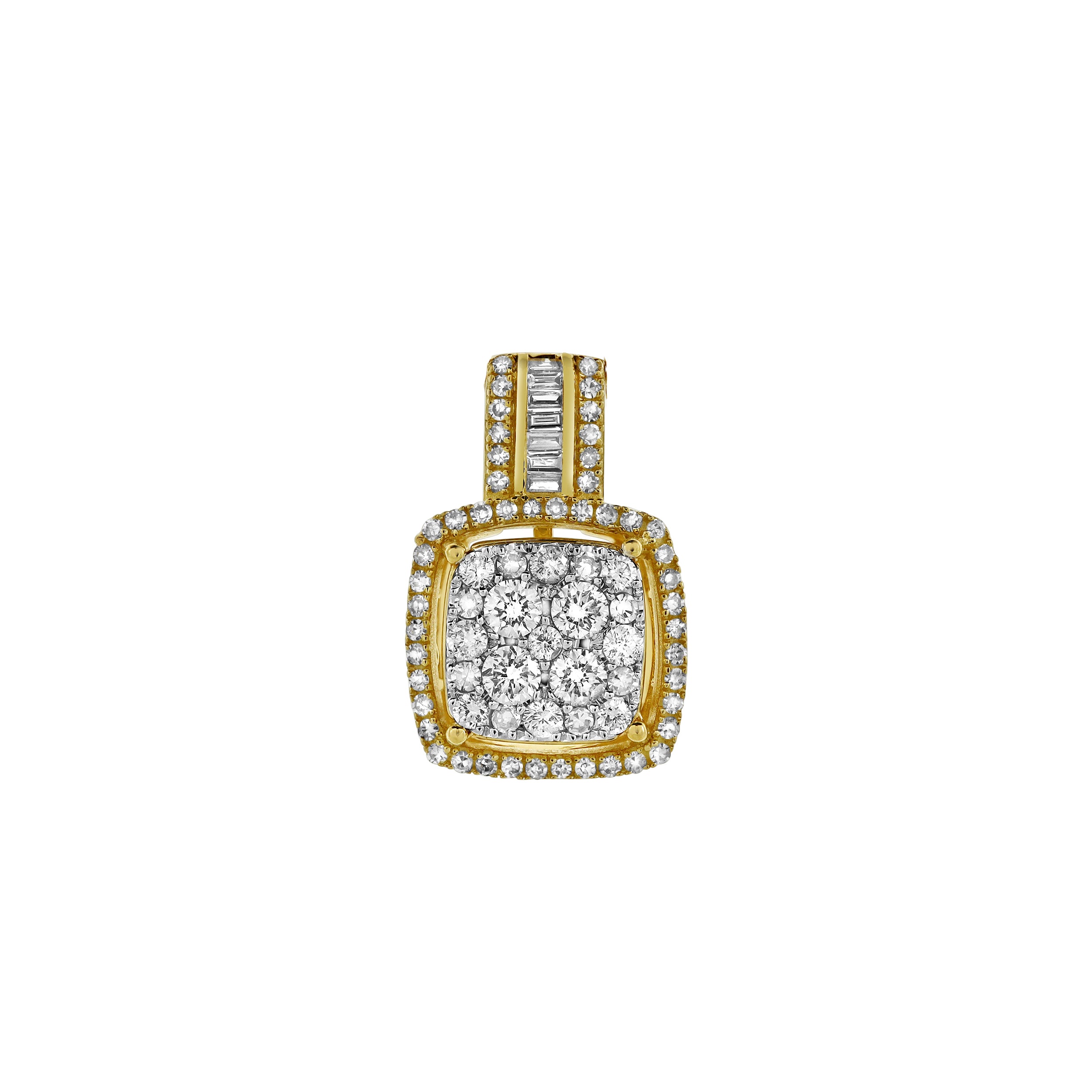 A luxurious cushion shaped 10K gold pendant with 0.63 cts of diamonds blends classic elegance with contemporary brilliance. *Pendant only. Chain not included*