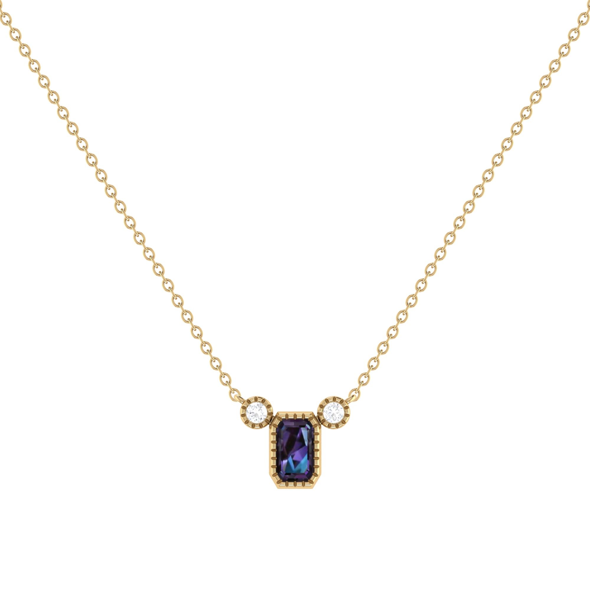 Emerald Cut Alexandrite & Diamond Birthstone Necklace In 14K Yellow Gold
