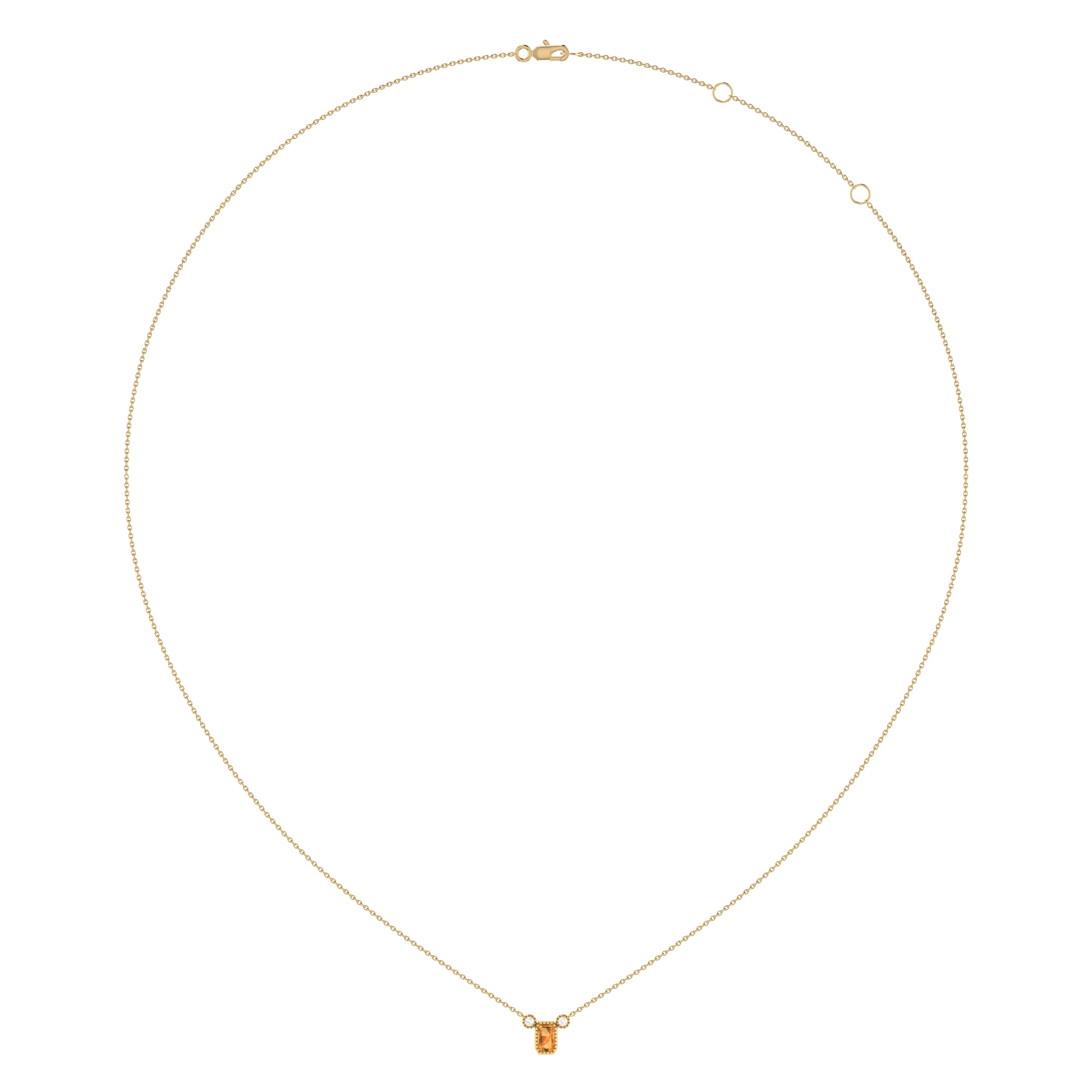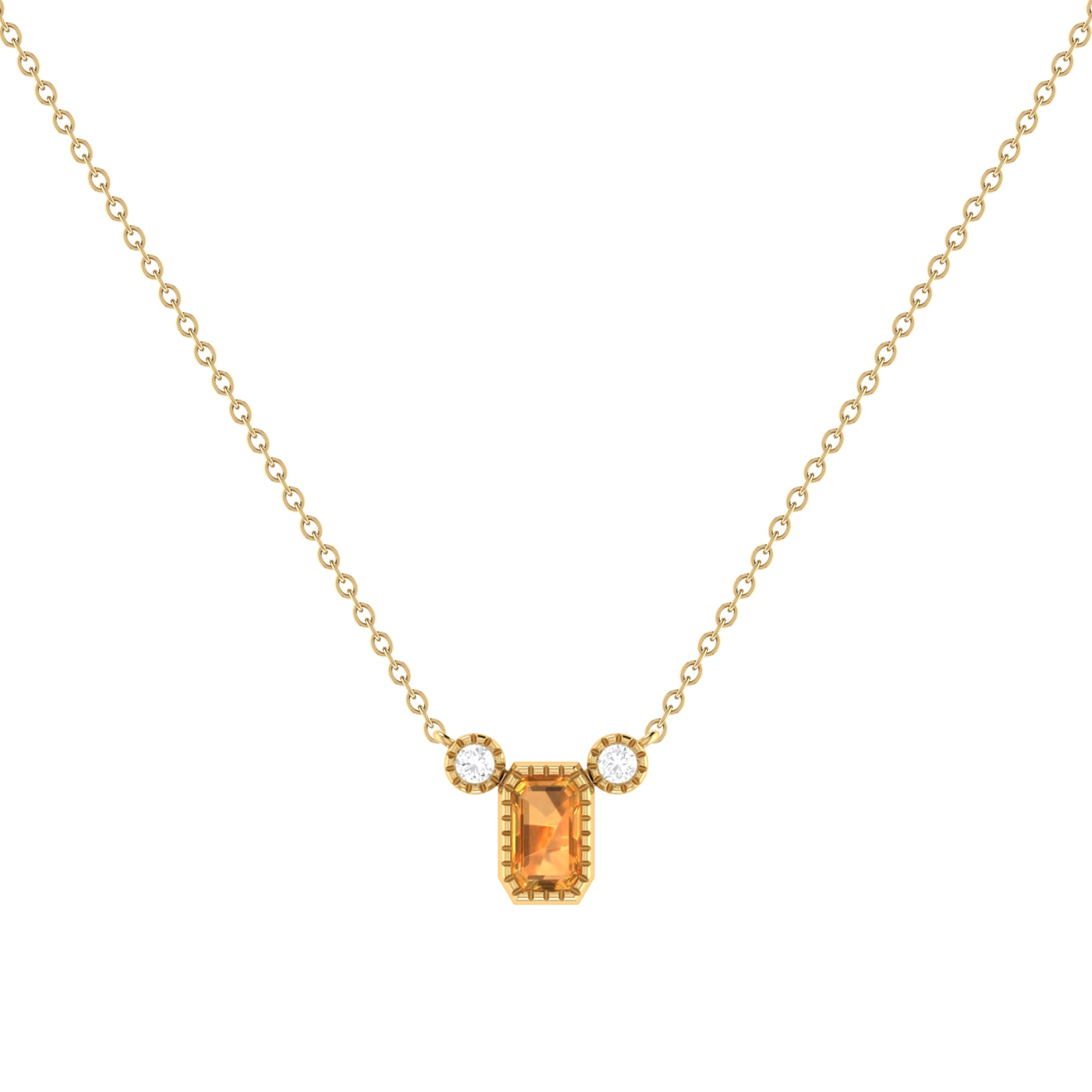 Emerald Cut Citrine & Diamond Birthstone Necklace In 14K Yellow Gold