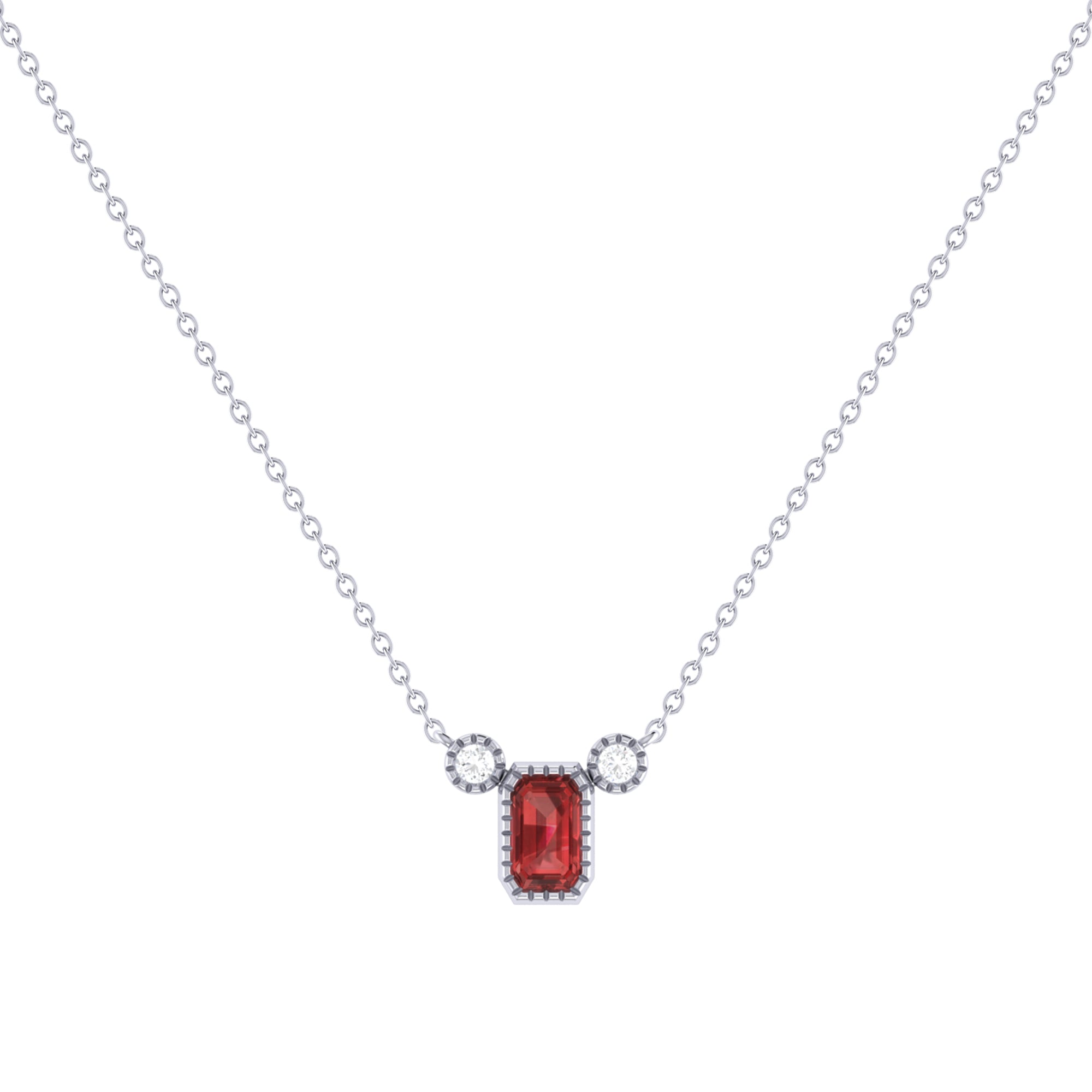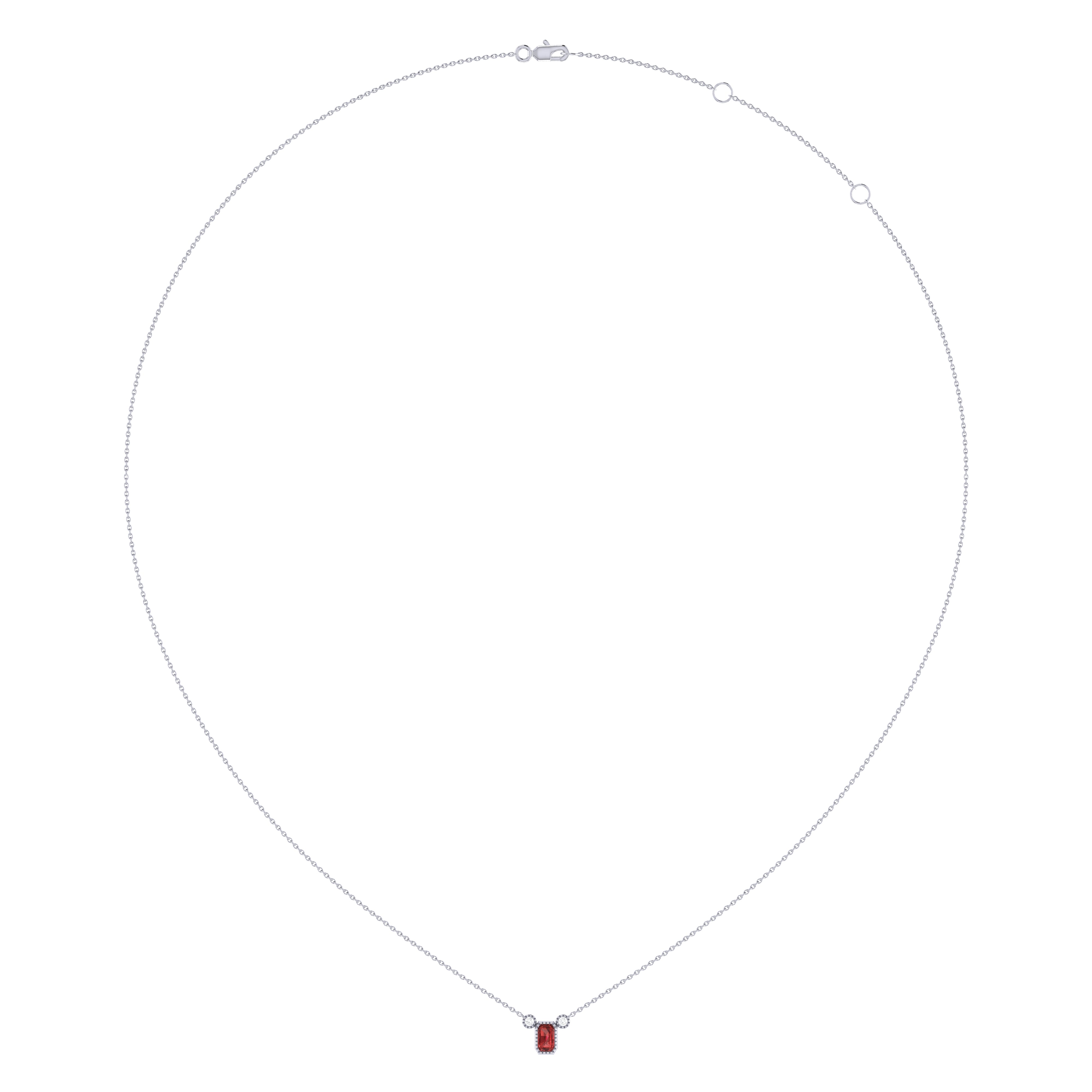 Emerald Cut Garnet & Diamond Birthstone Necklace In 14K White Gold