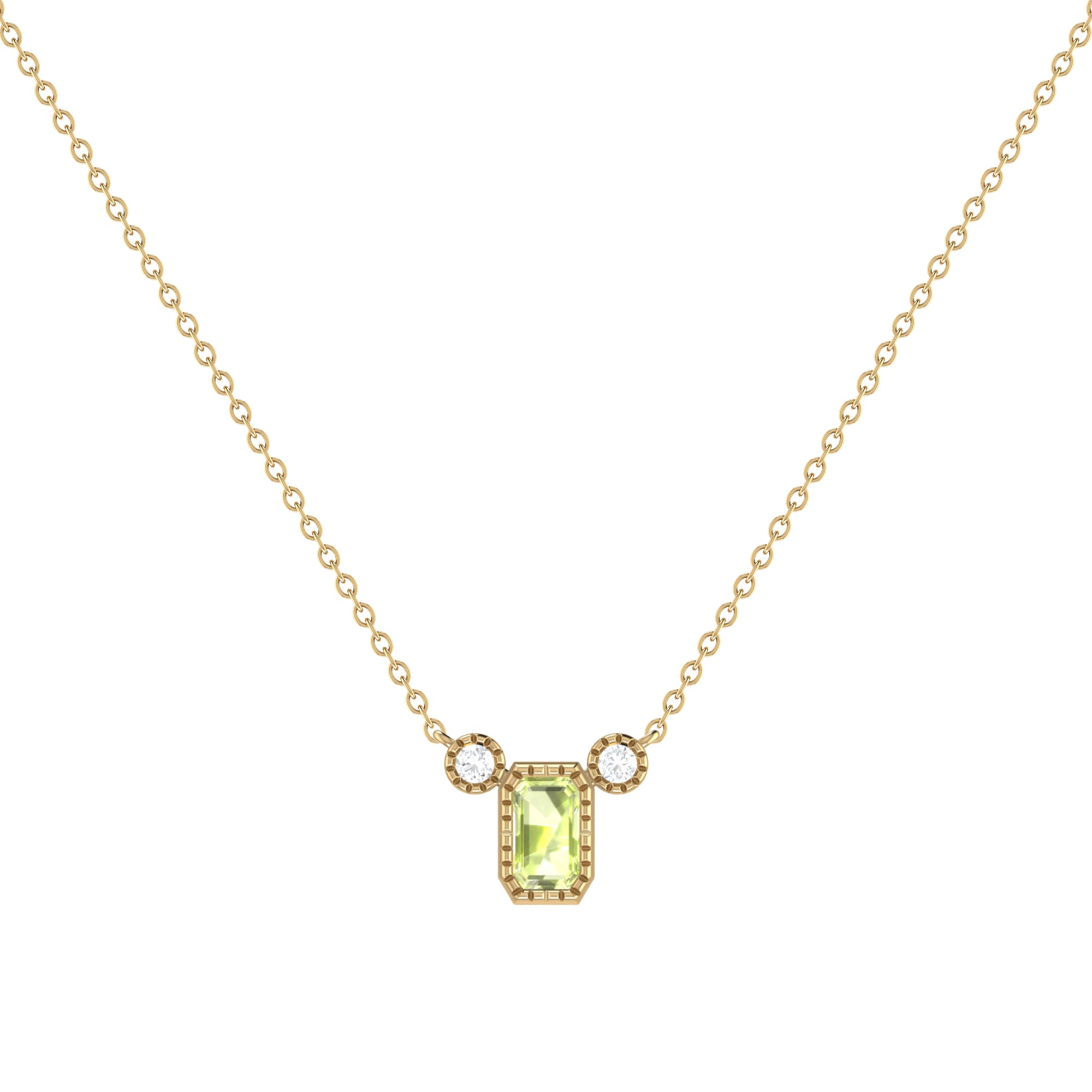 Emerald Cut Peridot & Diamond Birthstone Necklace In 14K Yellow Gold