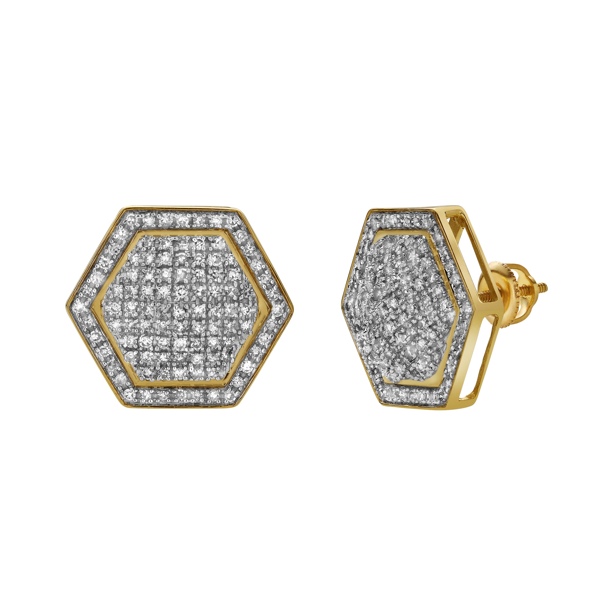 These gorgeous 0.78 carat diamond earrings feature a elegant cluster design meticulously set in 10K yellow gold with a screwback setting. Their elegant arrangement highlights the timeless brilliance of the diamonds.