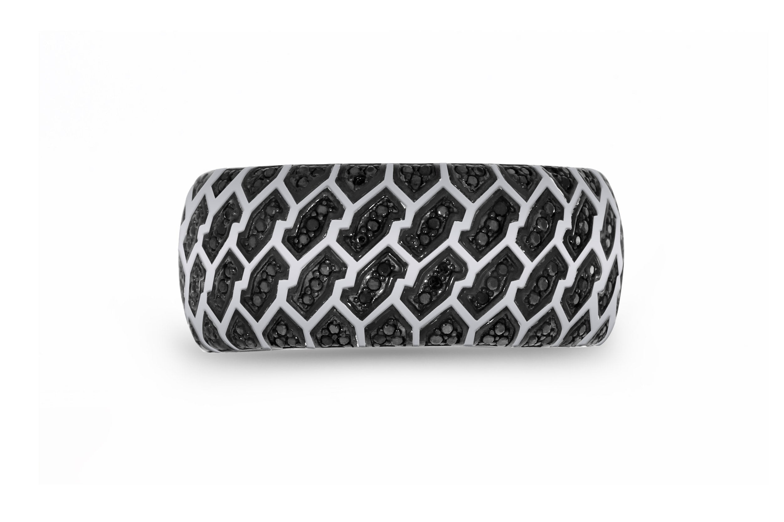 Fast Track Black Rhodium Plated Sterling Silver Tire Tread Black Diamond Band Ring