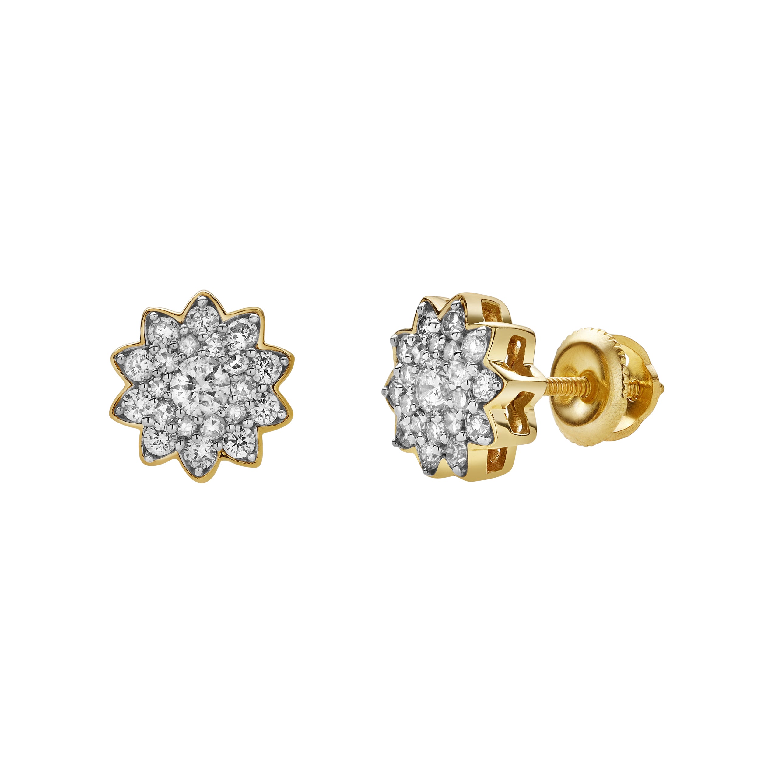 Florana 10K Yellow Gold Cluster Diamond Unisex Earrings - 0.48 Cts