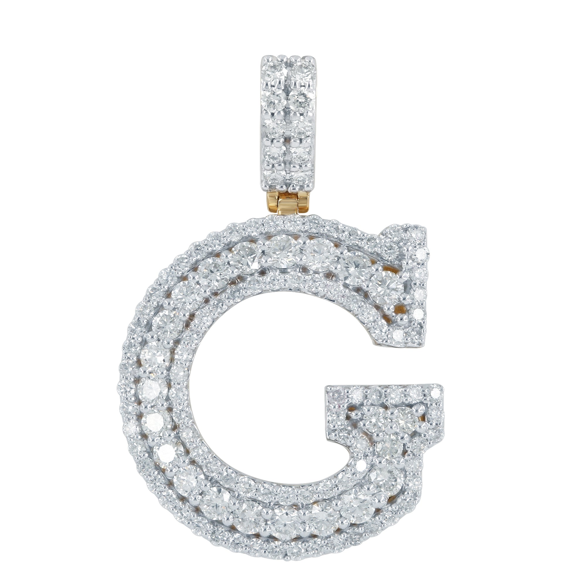 Crafted in 14K Yellow Gold this G initial pendant showcases 2.37 carats of H SI3 diamonds with an elegant profile and expert craftsmanship. CHAIN NOT INCLUDED.